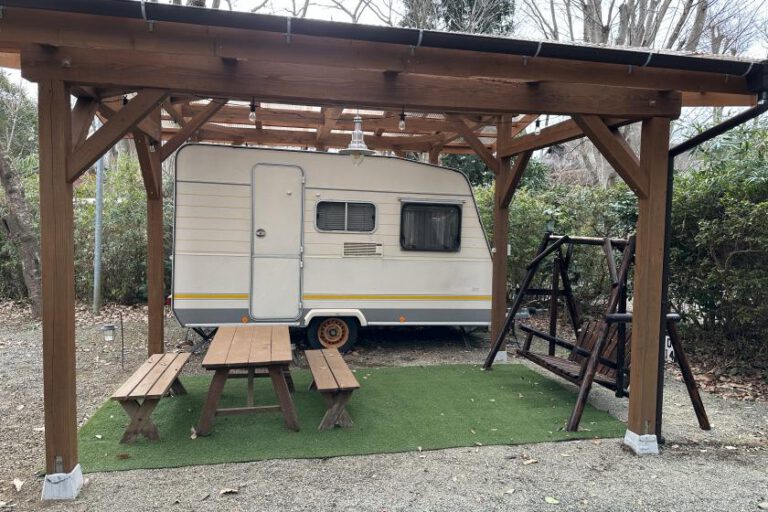 電源付きサイト45区画。3,300円〜/泊のオプション料金。予約時に申込み必要。