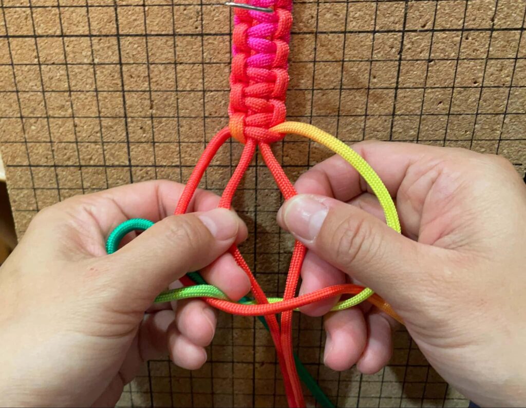 ⑦:同じ手順で、パラコードが短くなるまで編み進めます。