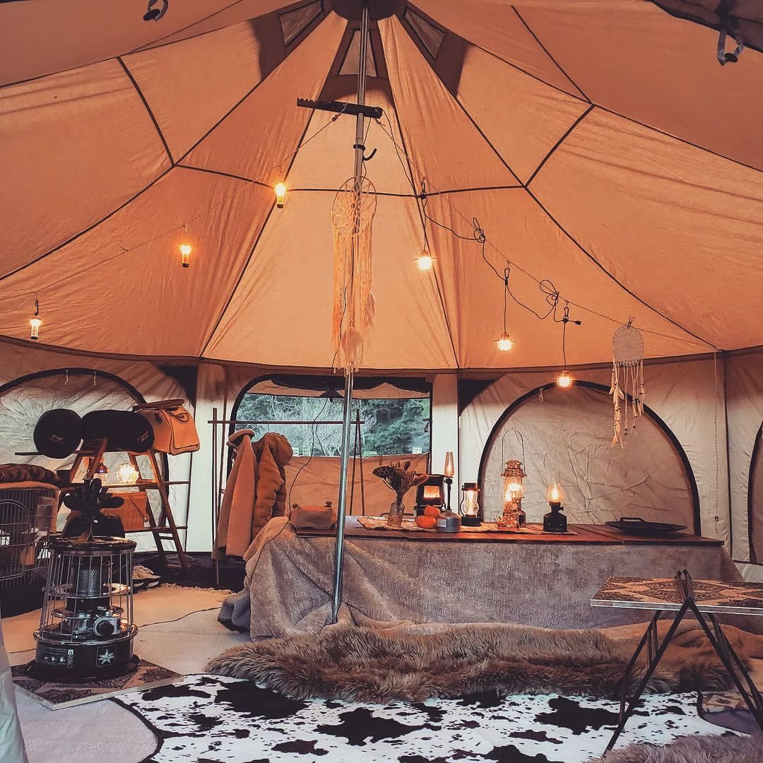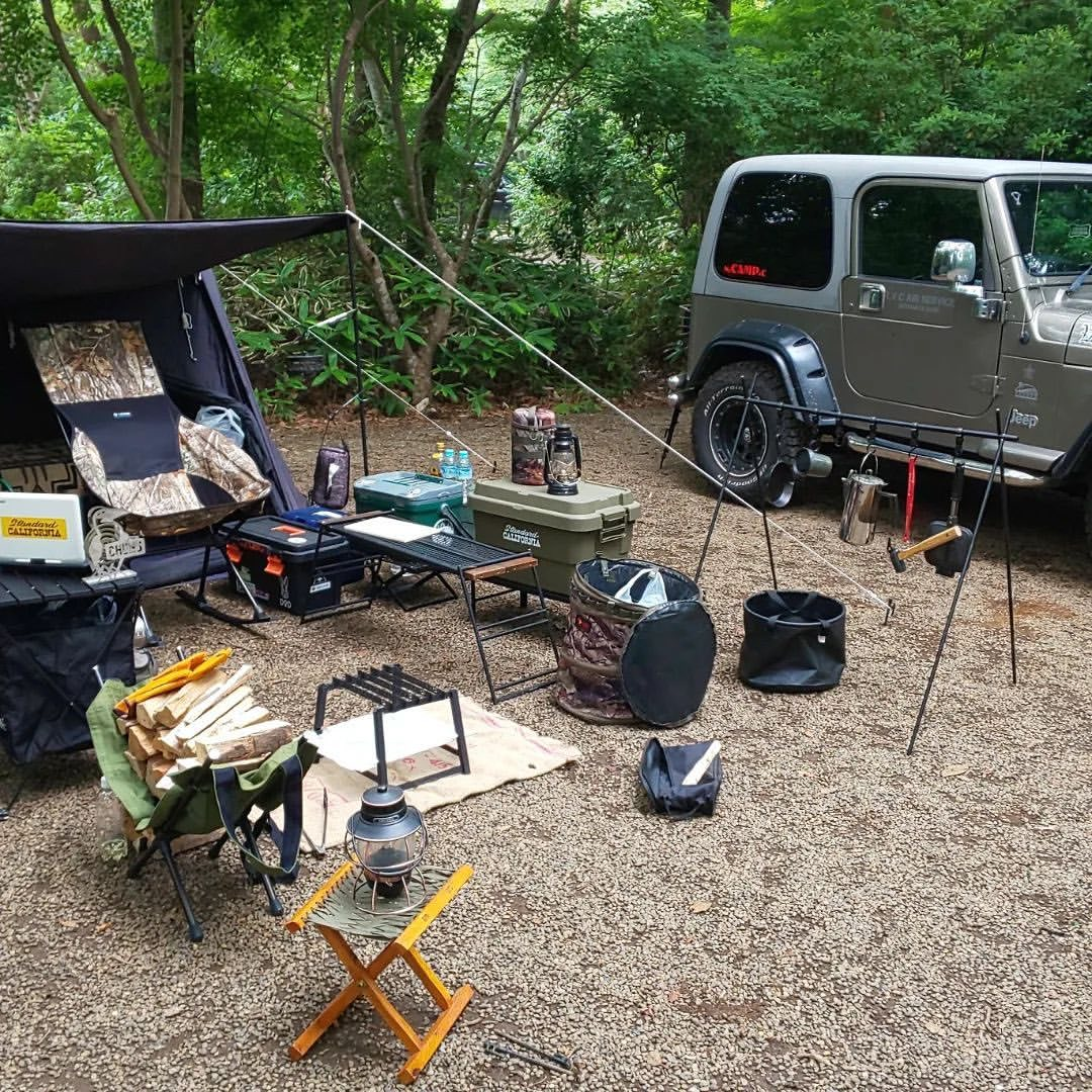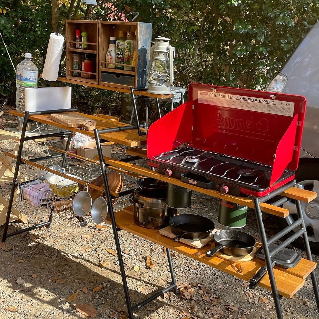 こだわりのテントやランプ、キッチンツールなどコーディネートは無限大ですよ。