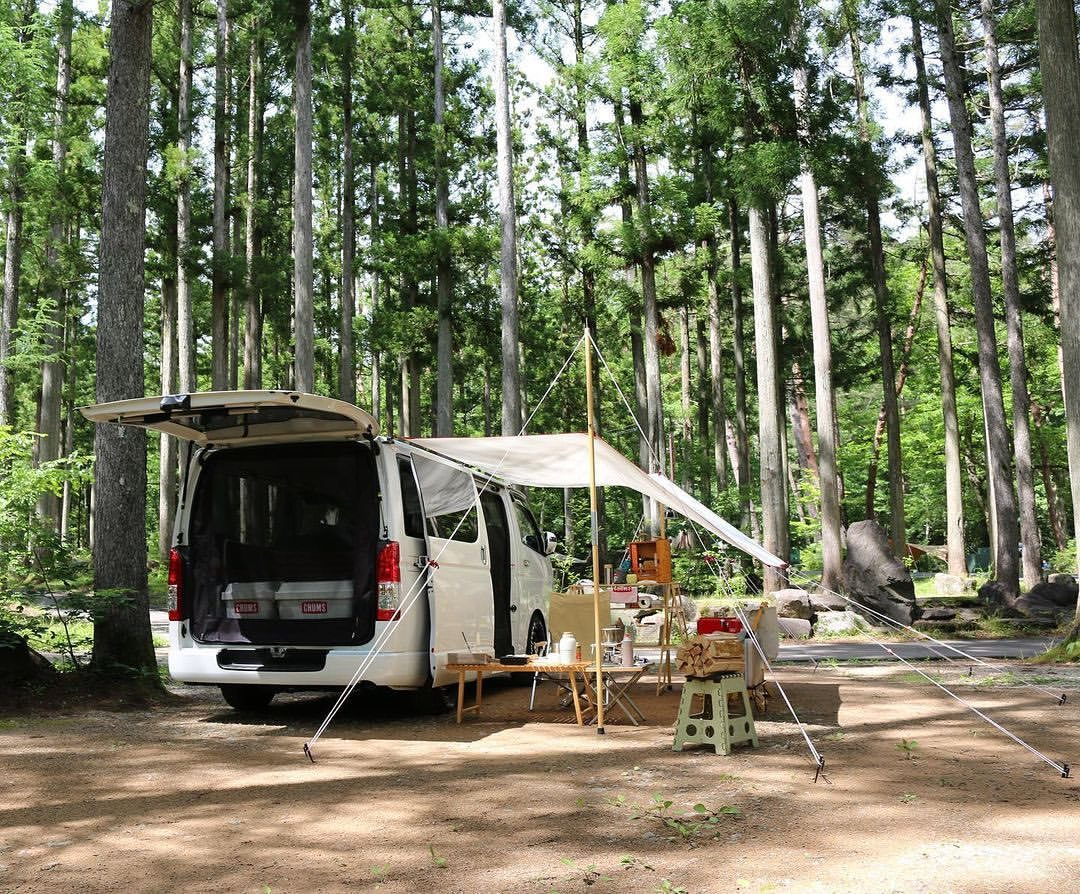 【車中泊や車にタープを連結した車ありきのレイアウトを楽しむ】