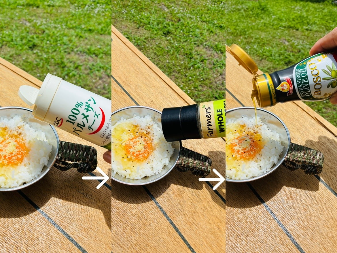 アレンジ1:パルメザンチーズを使った洋風オリーブオイルTKG