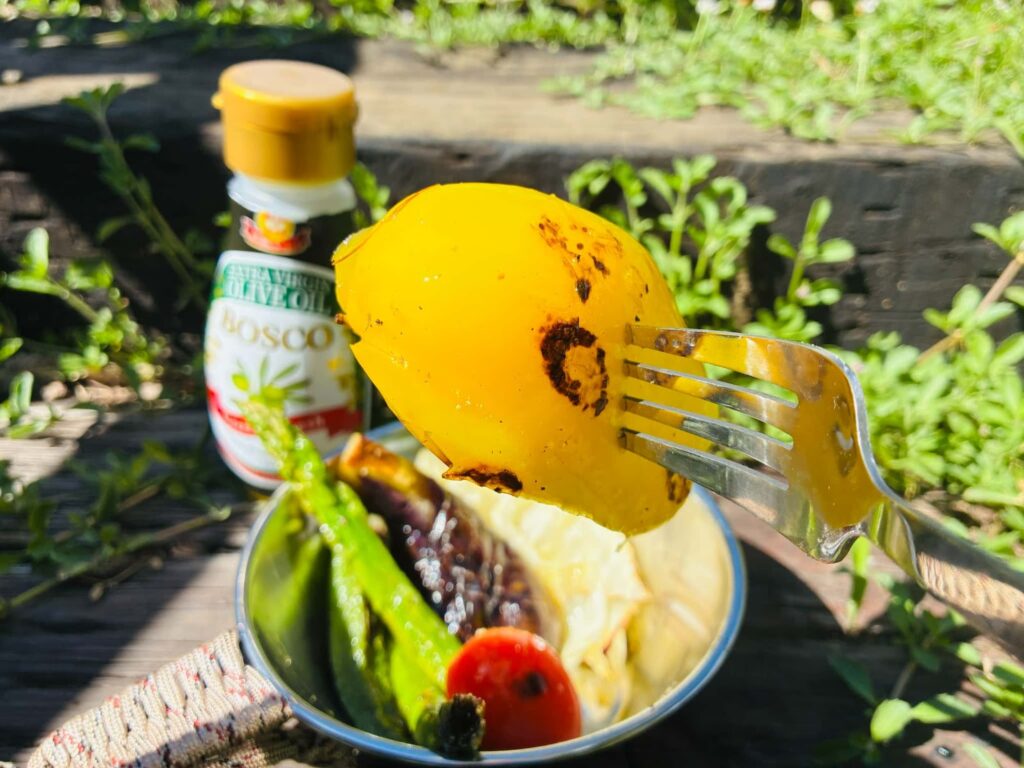 キャンプではつい偏った食事になりがちですが、オリーブオイルを取り入れることで手軽に健康的な一皿が作れるかも!