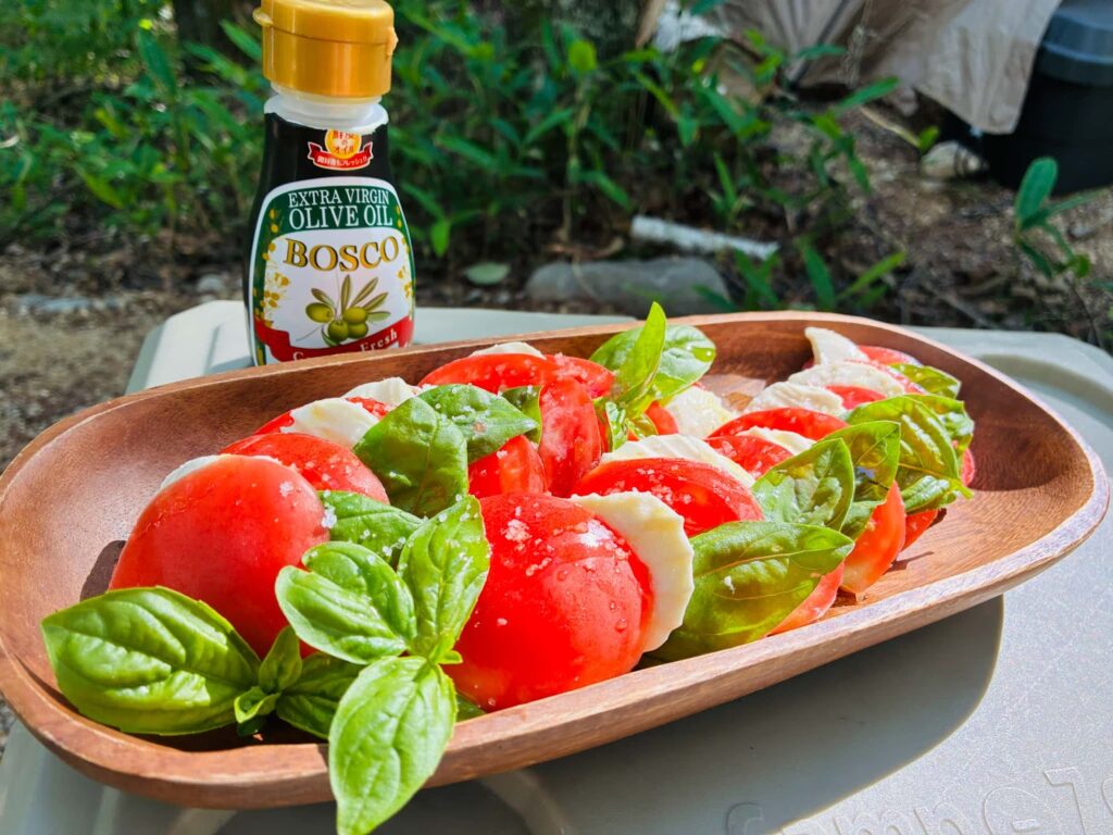 野外で食べる料理は、風味や香りの強さが味の決め手に。BOSCOエキストラバージンオリーブオイルは、青々としたフルーティな香りと豊かなコクが特徴。