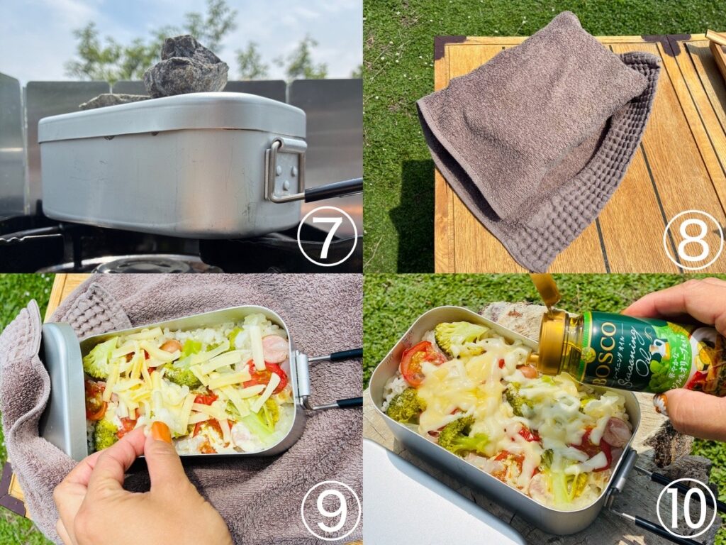 - 火から下ろし、タオルに包んでからひっくり返して10分おいておく(蒸らすため)