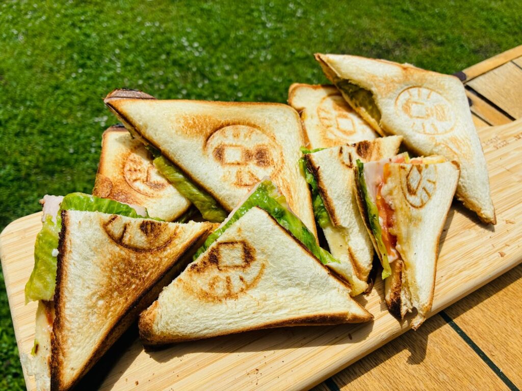 - ホットサンドメーカーに挟み、弱火~中火で両面をじっくり焼いていく。