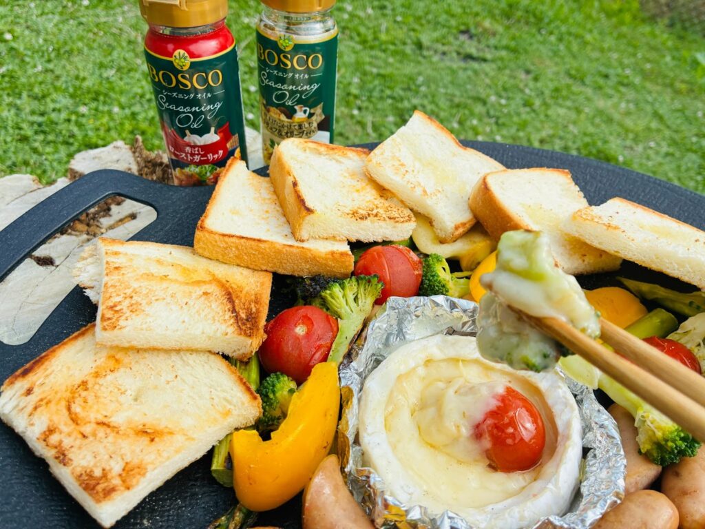 とろ〜りカマンベールにトリュフの香りをプラス。BOSCOのシーズニングオイルで仕上げる、贅沢キャンプフォンデュ!