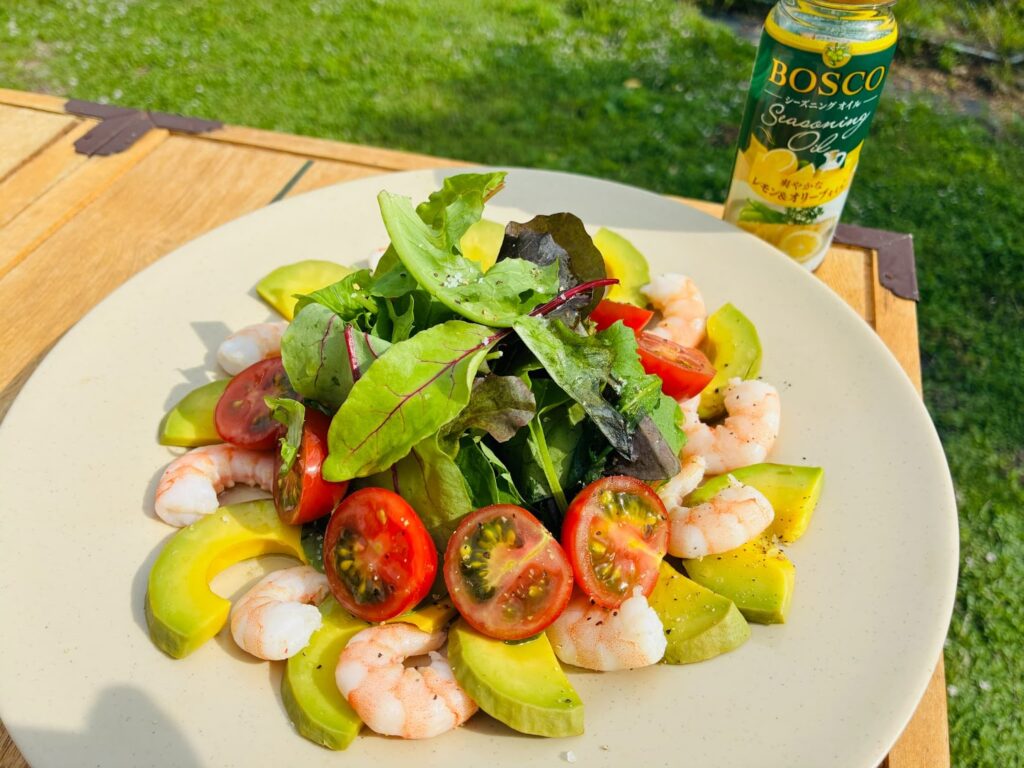 - 最後にBOSCO シーズニングオイル レモン&オリーブオイルをたっぷりと回しかけたら完成!