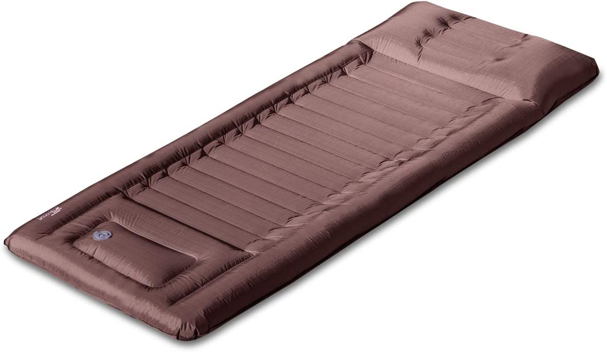 500mlのペットボトルよりも軽量なコンパクトさなのに、厚さ8cmと快適さも兼ねているのが魅力的。ポンプ袋で空気を入れられ、他に必要な道具もいらず、キャンプでの積載時に便利です。