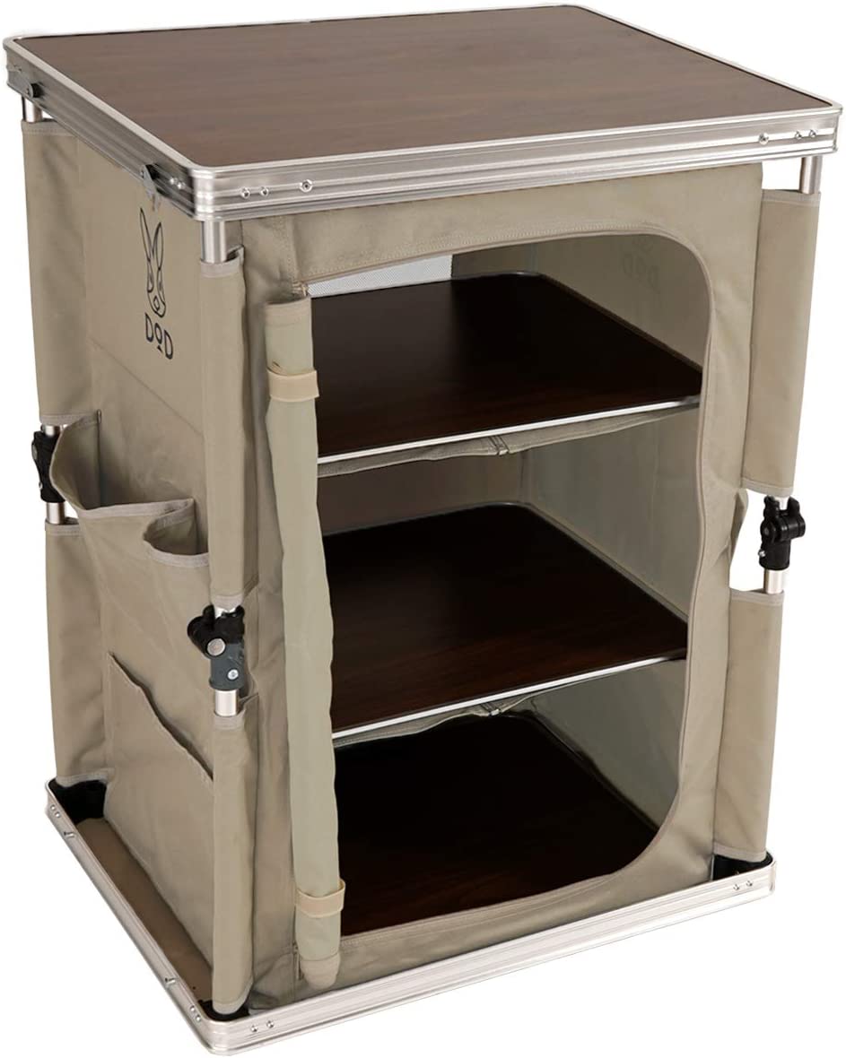 ■DOD(ディーオーディー) クッキングキング オールインワンキッチン 耐熱メッシュ 収納棚付き