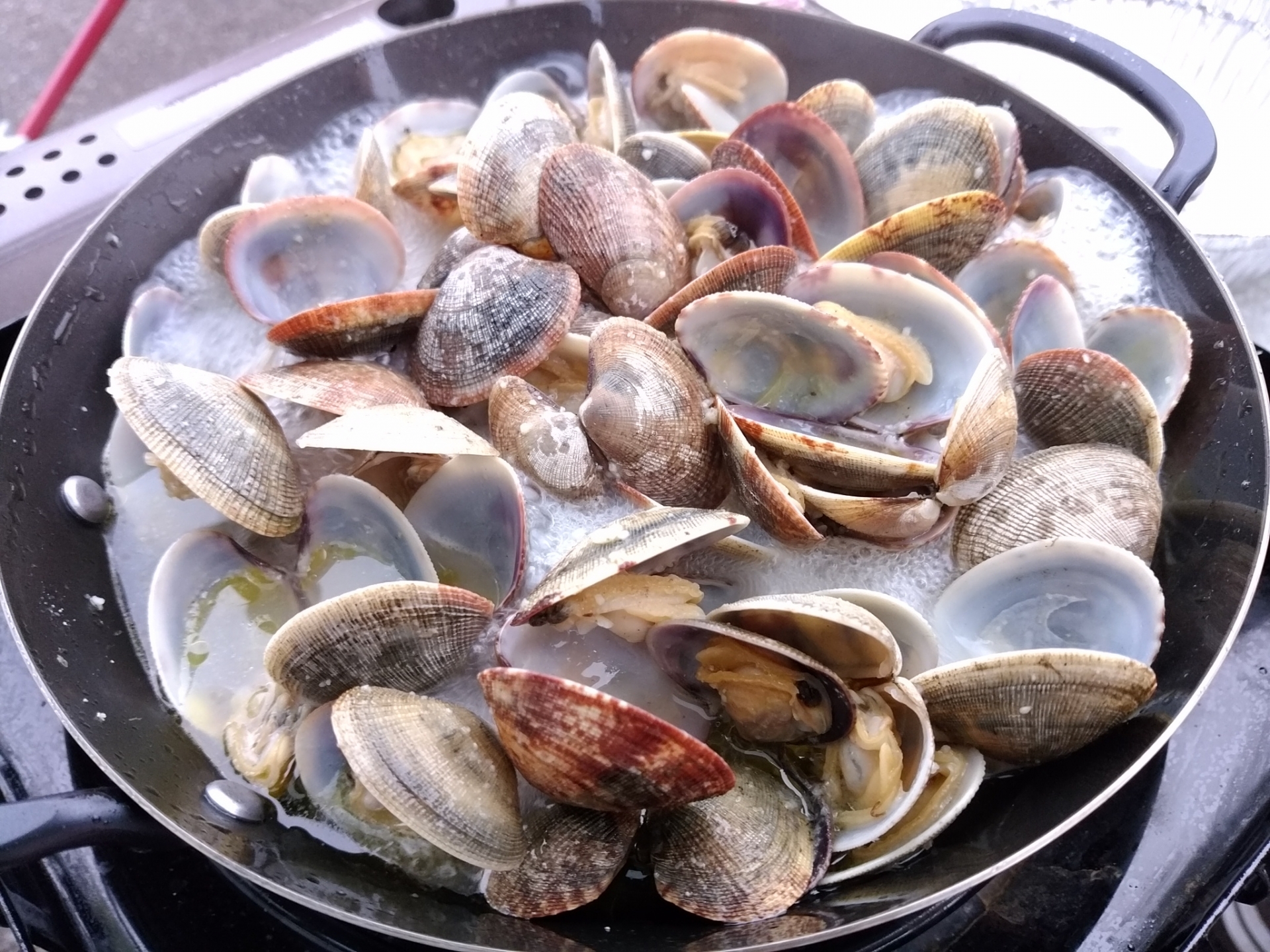 あさりの酒蒸しに料理酒は必須。醤油をたらりと垂らしていただきましょう。