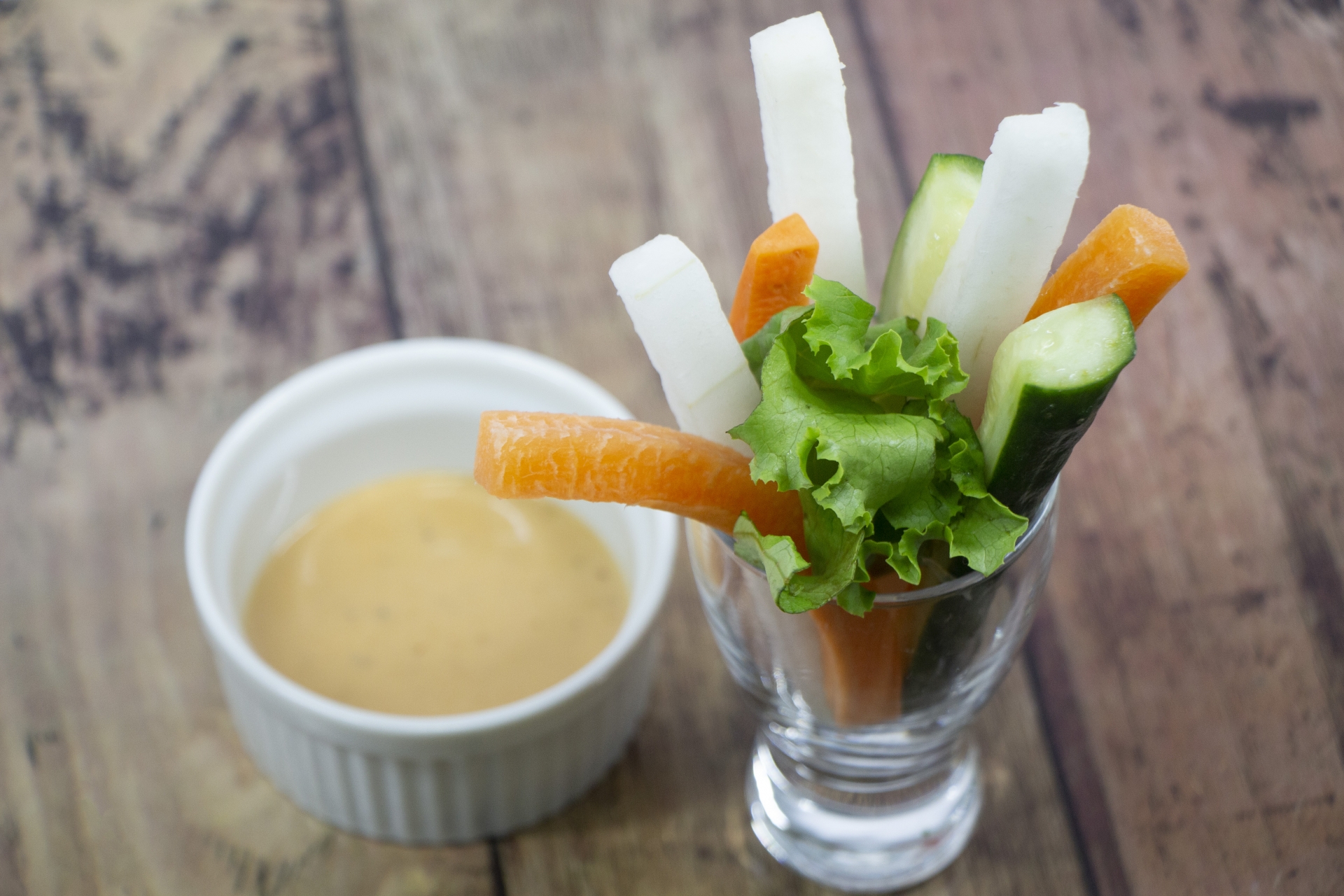 採れたての野菜を様々なマヨネーズでディップしていただく。野菜は切るだけで簡単なのも嬉しいポイント。