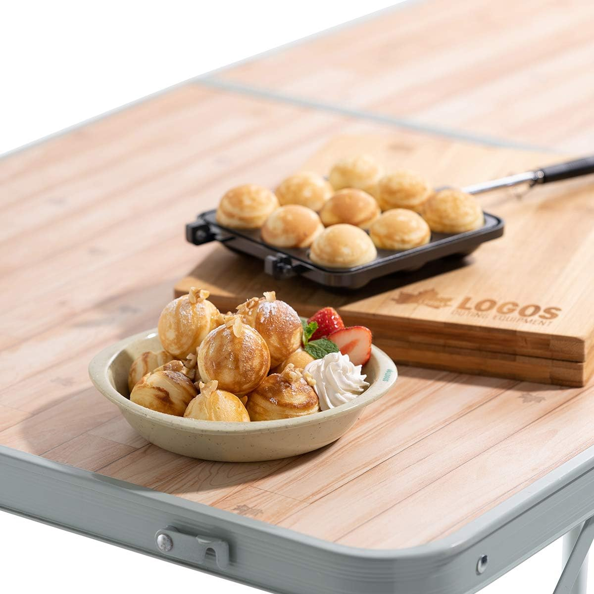 ロゴスのたこ焼きポールメーカーは上下分離型で、サンドができるようになっていてベビーカステラなどの調理が簡単にできるようになっています。