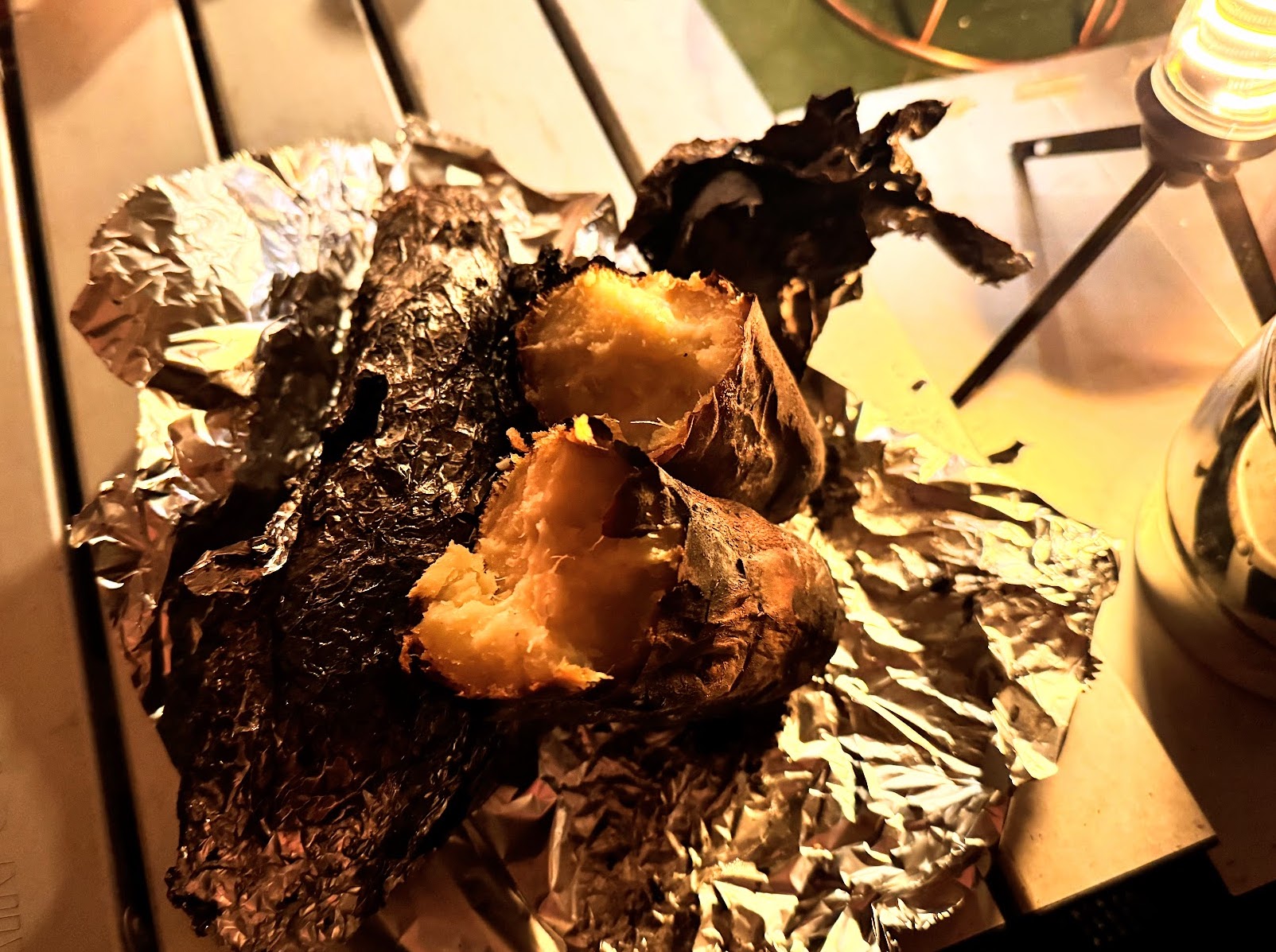 焚き火では火加減の調整がむずかしく、表面だけ焦げて中は生焼けなんてことしばしば。