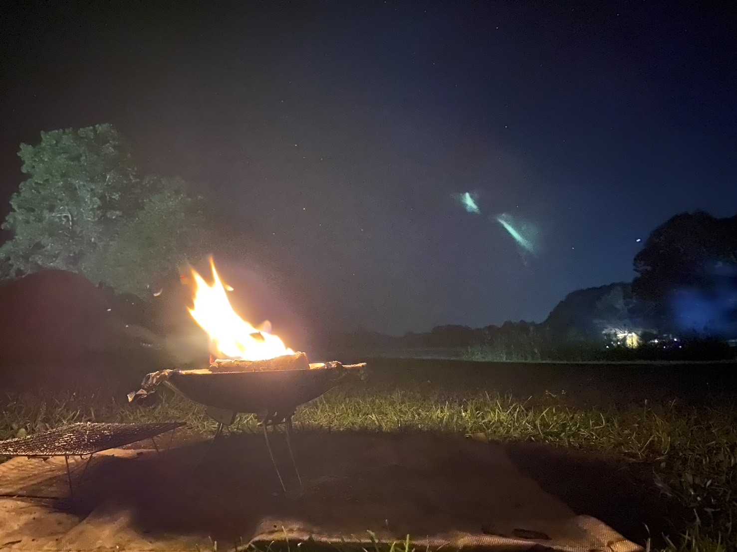 とはいえ、風が弱いときでも火の粉は飛びます。テントやキャンプ道具に燃え移らないよう、じゅうぶんに距離をとって行うのが鉄則です。