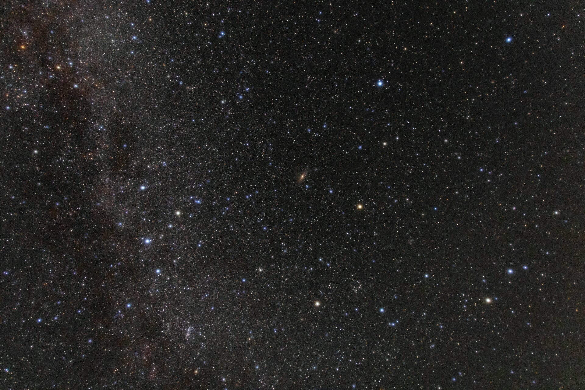 アンドロメダ座の少し上にぼんやりと、かすんだように見えるところを見つけてみましょう。