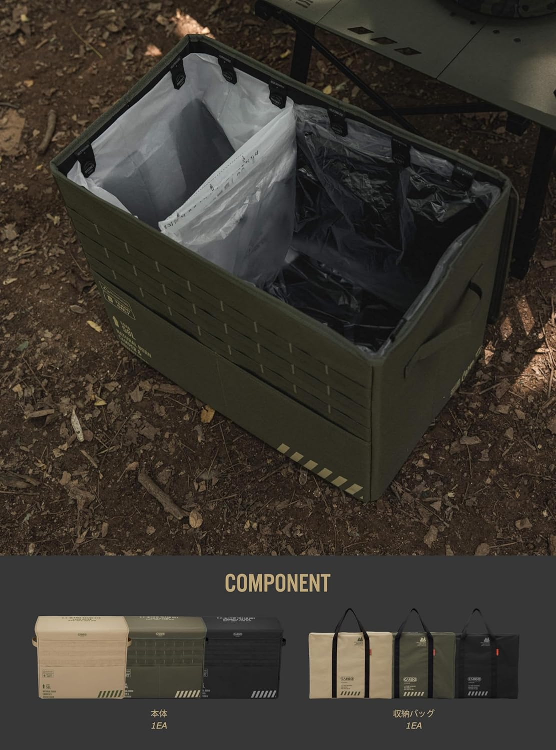 韓国発の人気アウトドアブランドCARGO CONTAINERの便利でスタイリッシュなキャンプ用ゴミ箱。