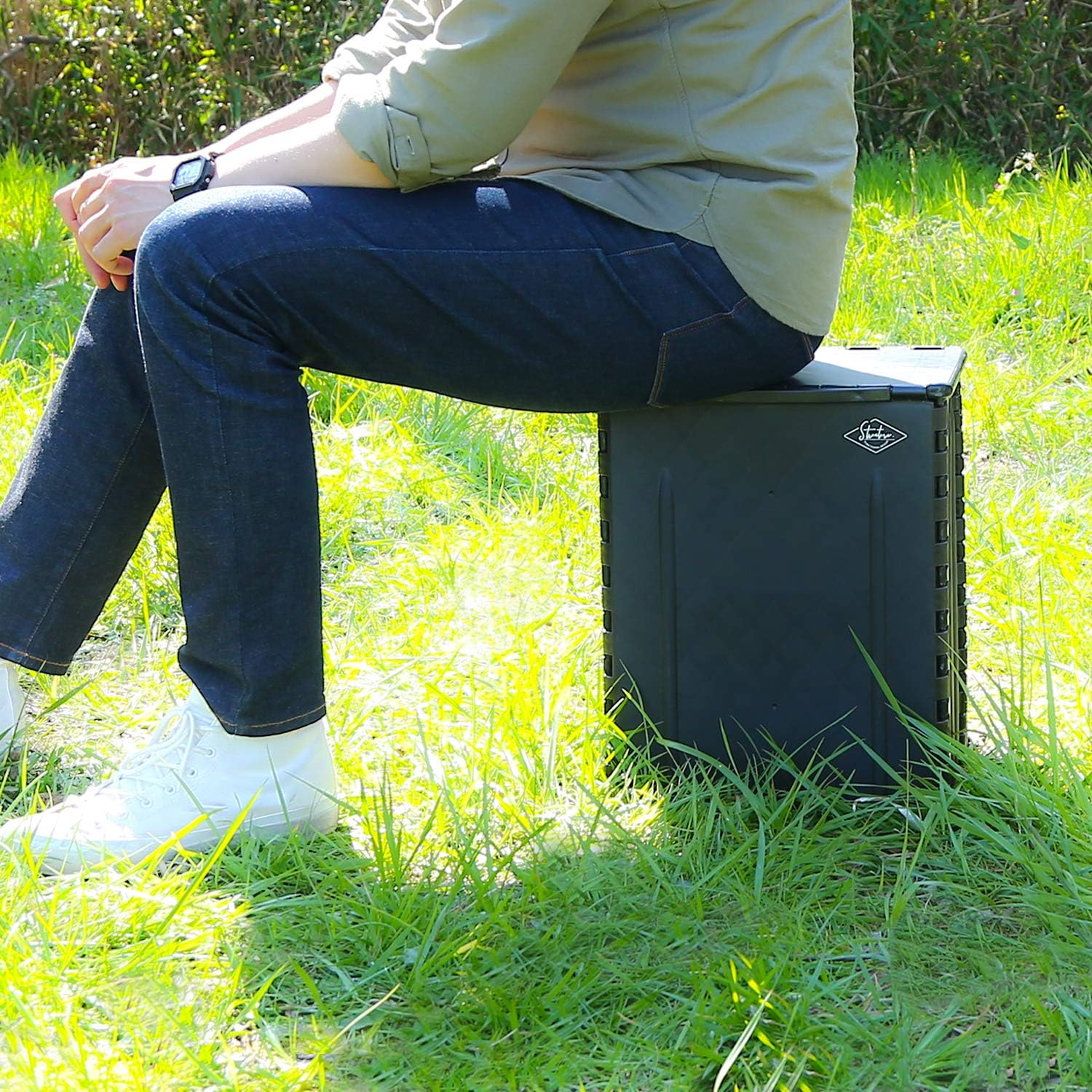 ゴミ箱としても使えるスツール。組み立てや折りたたみが簡単で、アウトドアにもぴったり!