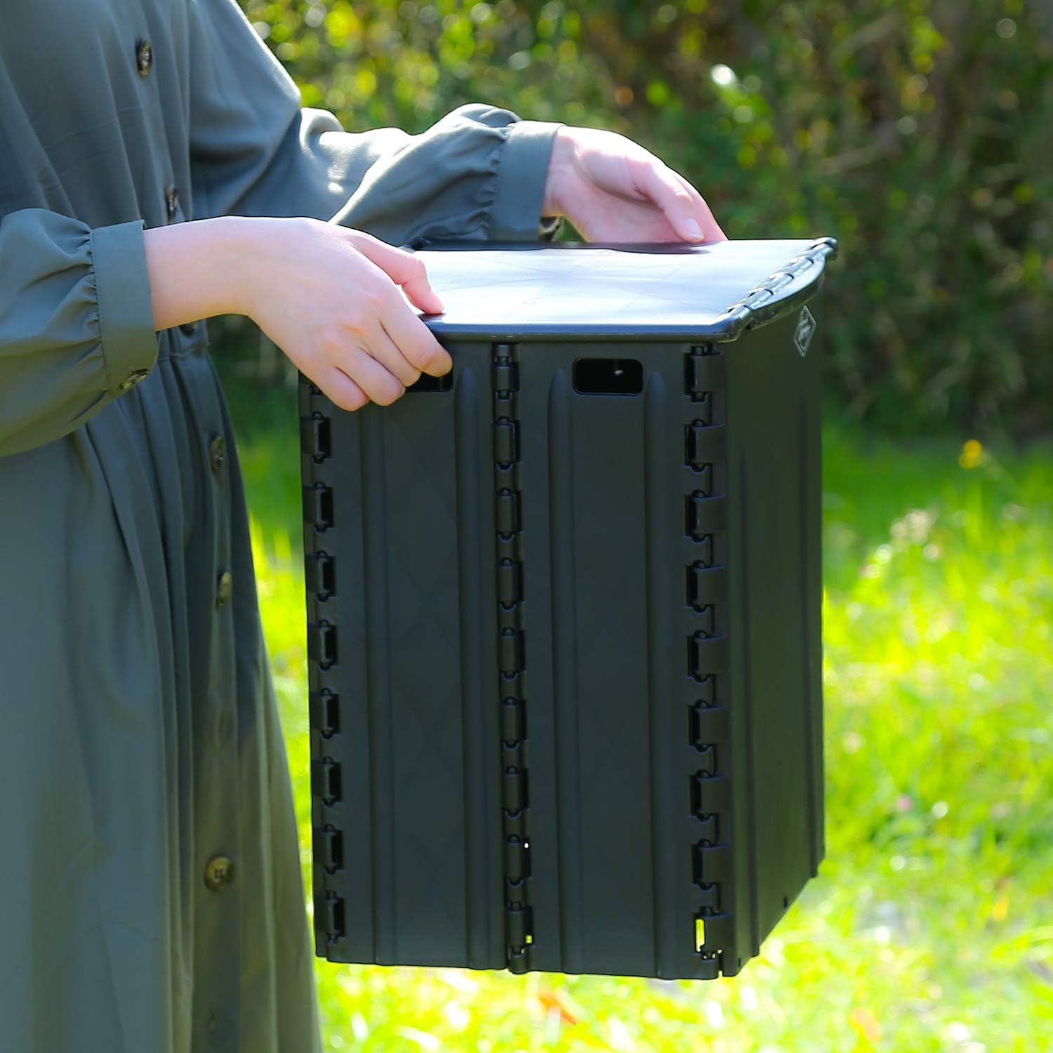 折りたたむとコンパクトになり、用途はゴミ箱だけでなく、エコバッグやアウトドア用品の収納など、多彩な使い方が可能です。
