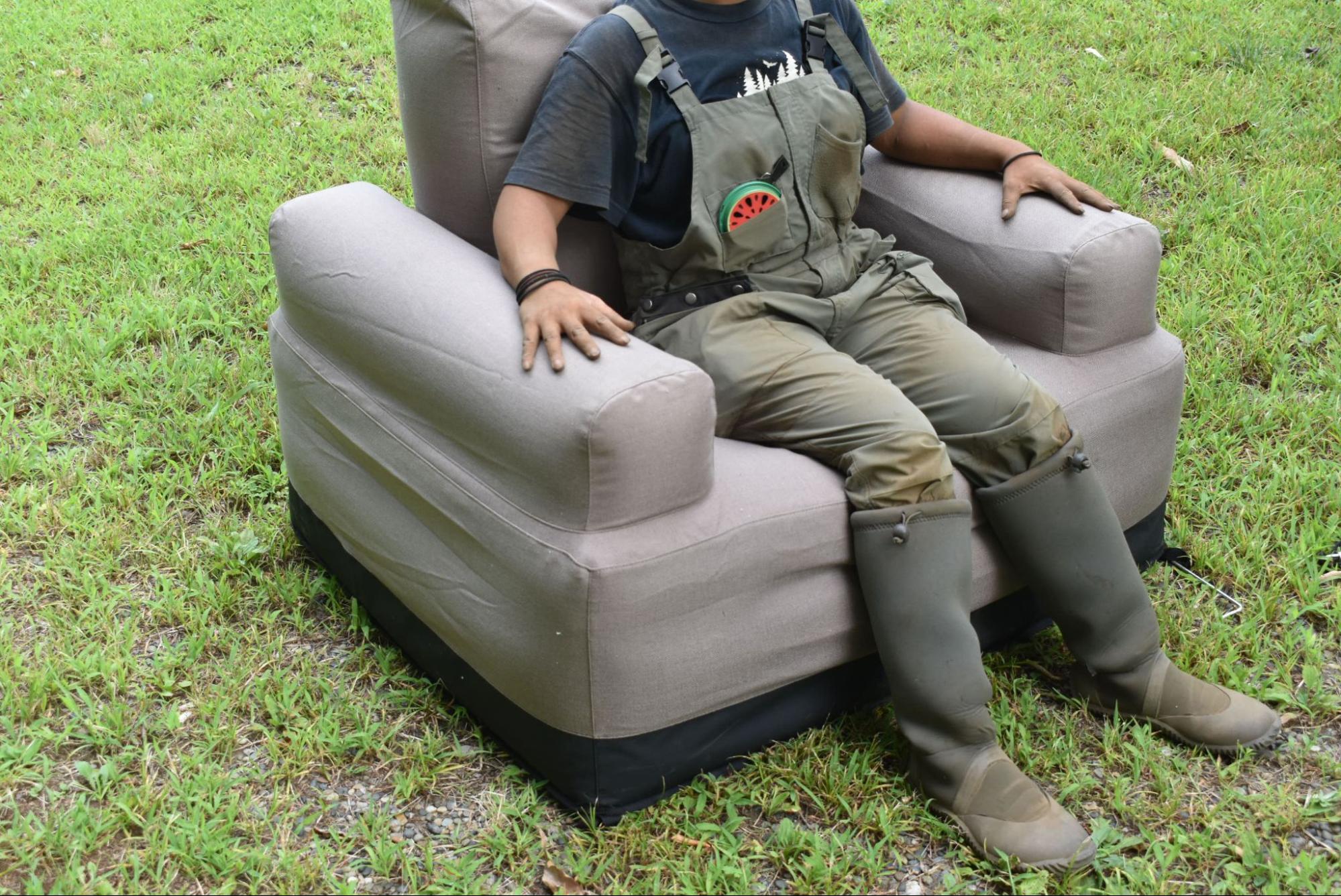 エアカウチは一般的なアウトドアチェアよりもゆったりと過ごせます。包み込まれるような座り心地とひじ置きのおかげでリラックスでき、自然の中での読書や星空鑑賞を楽しむのに全力でおすすめできるチェアです。
