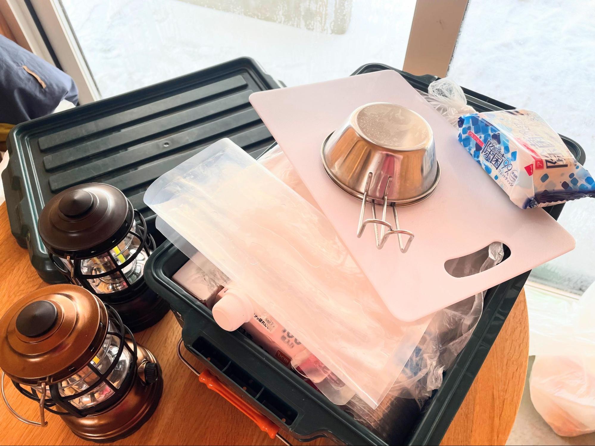 季節を問わず、生ものや飲み物を冷やすためにクーラーボックスがあると大変便利で安心です。保冷剤・蓄冷材も忘れずに入れておきましょう。
