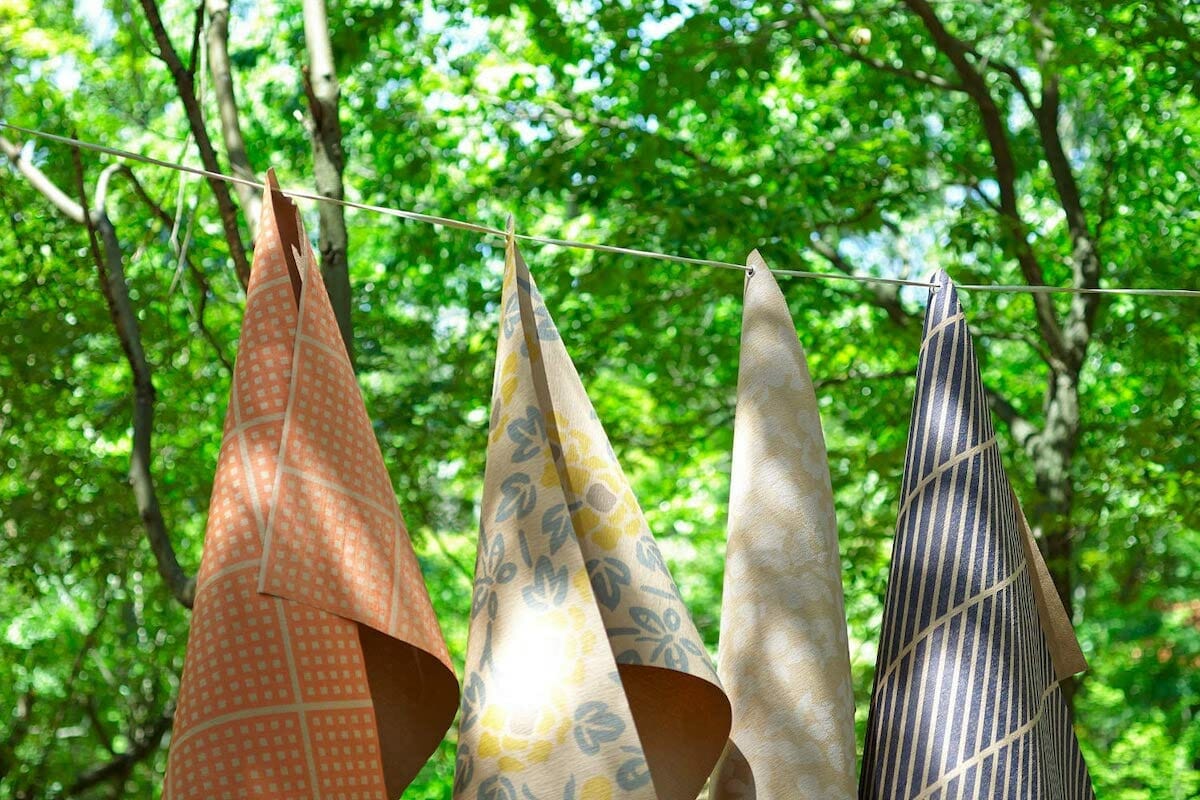 クレープ紙はもともと電線を包装する再生紙ですが、伸縮性に優れ強度が強く、耐水性にも優れています。その特性を活かして作られたのが、crepのレジャーシートです。