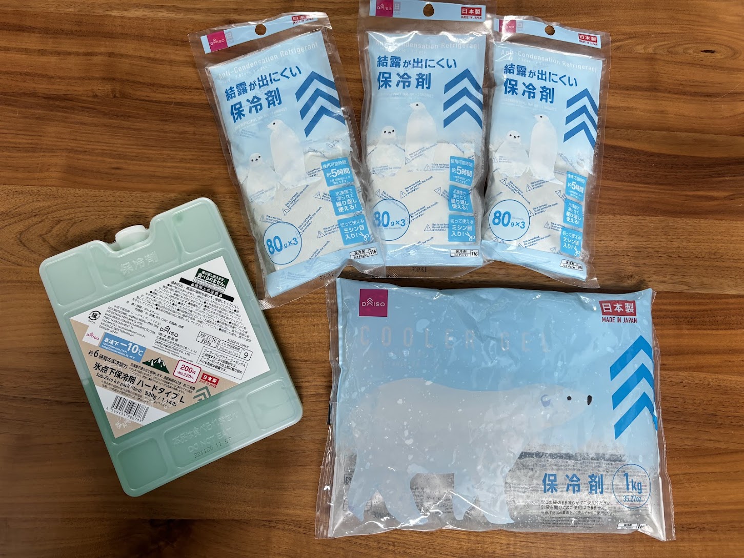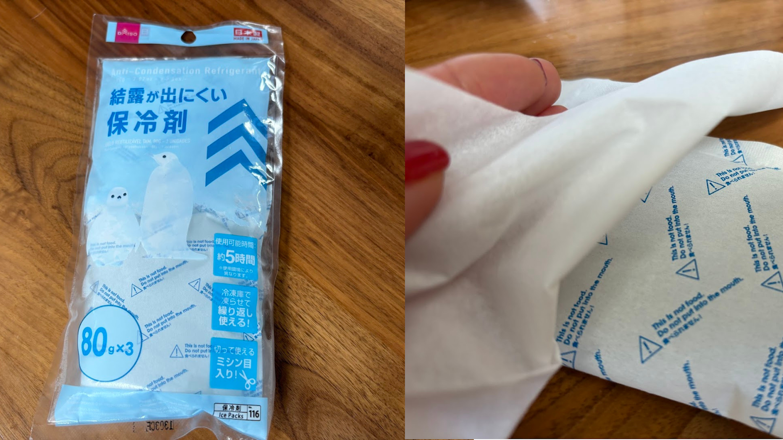 DAISOで購入▷結露が出にくい保冷剤(80gx3個)