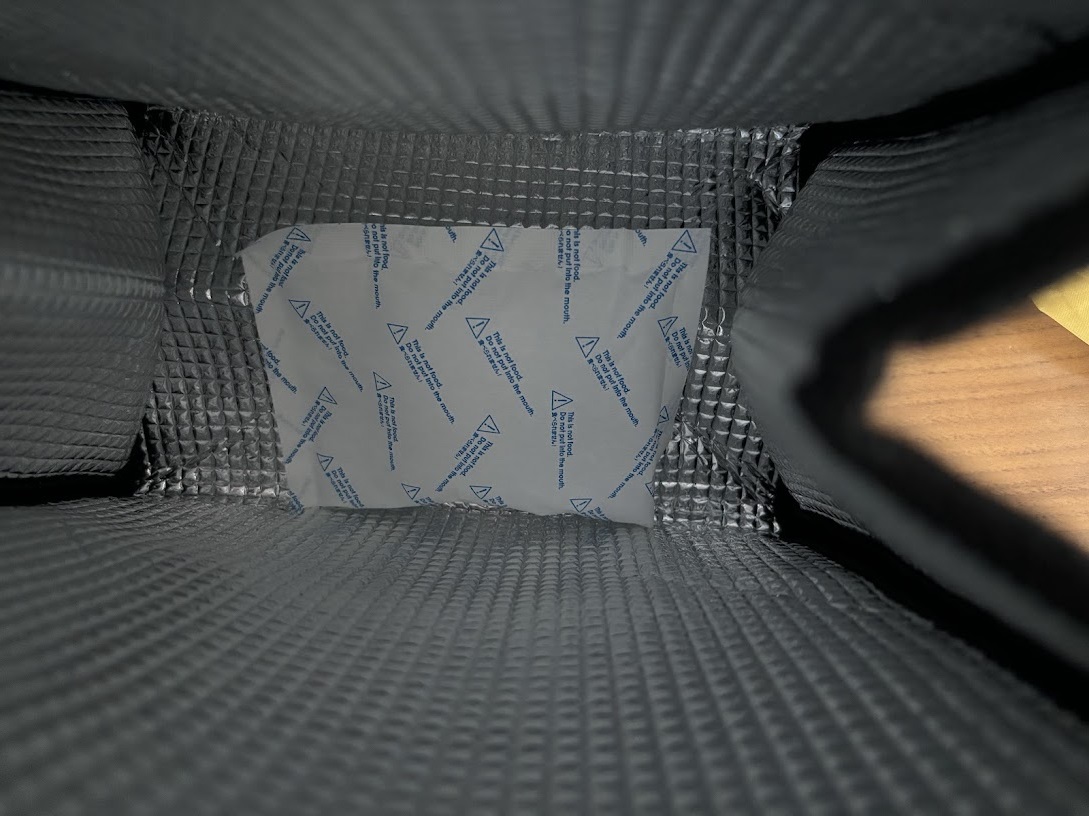 最下位のこれらの保冷バッグの中の保冷剤は、完全に常温になっていました。