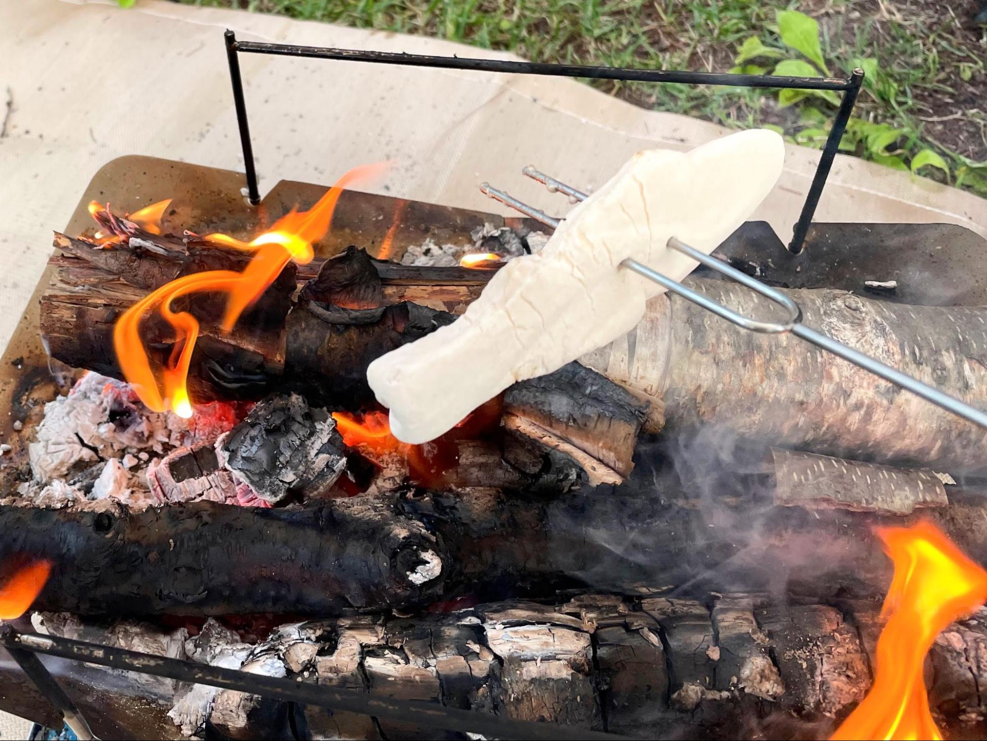 まるで釣った川魚を焼くような感覚で、マシュマロを串にさし焼いて食べることで、大人も子どもも一緒に、楽しめます。