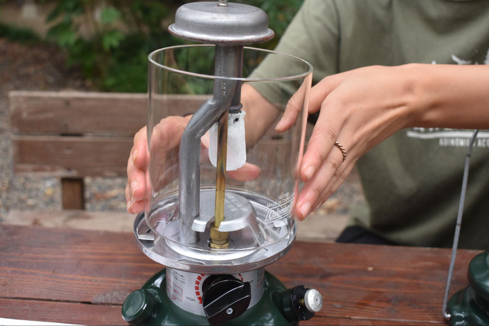 ランタンを、キャンプで使用するとガラスホヤ(グローブ)にススがついて汚れてしまったり、光に集まってきた虫の死骸などがこびりついていたりします。