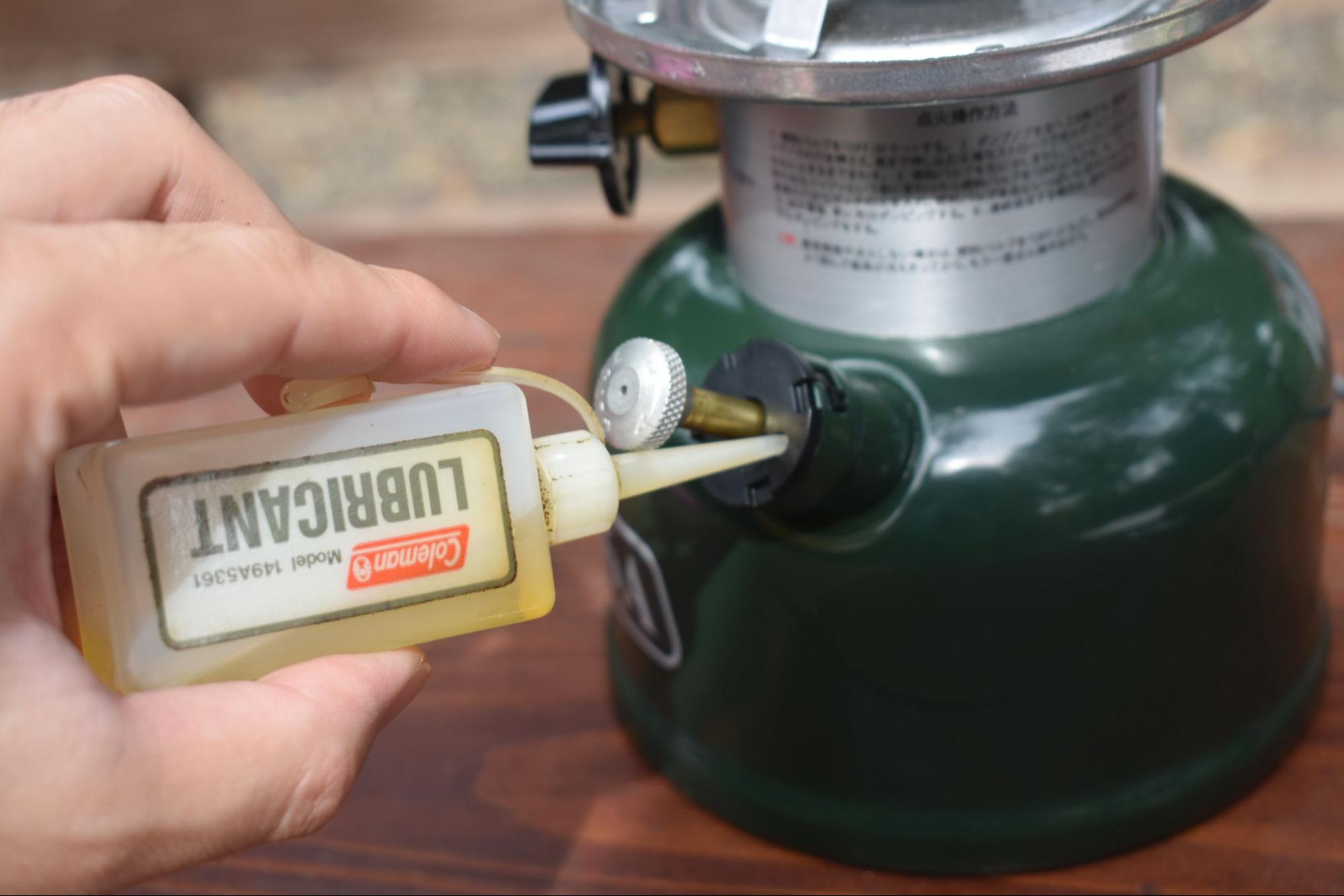 ガソリンランタンの基本メンテナンスといえば、ポンプカップにオイルをさすこと。