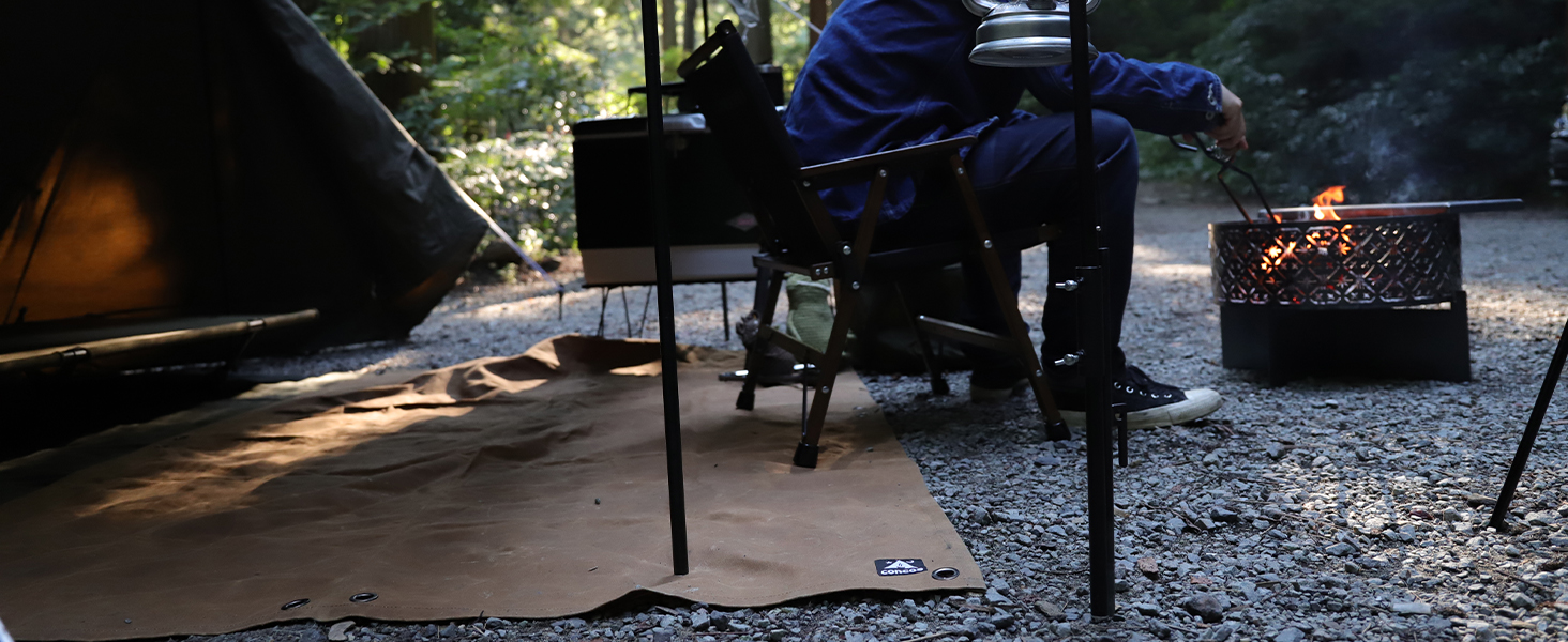 撥水・防炎性能に優れた6号相当の綿帆布を採用し、耐久性抜群で冬キャンプでも底冷えを防ぎます。