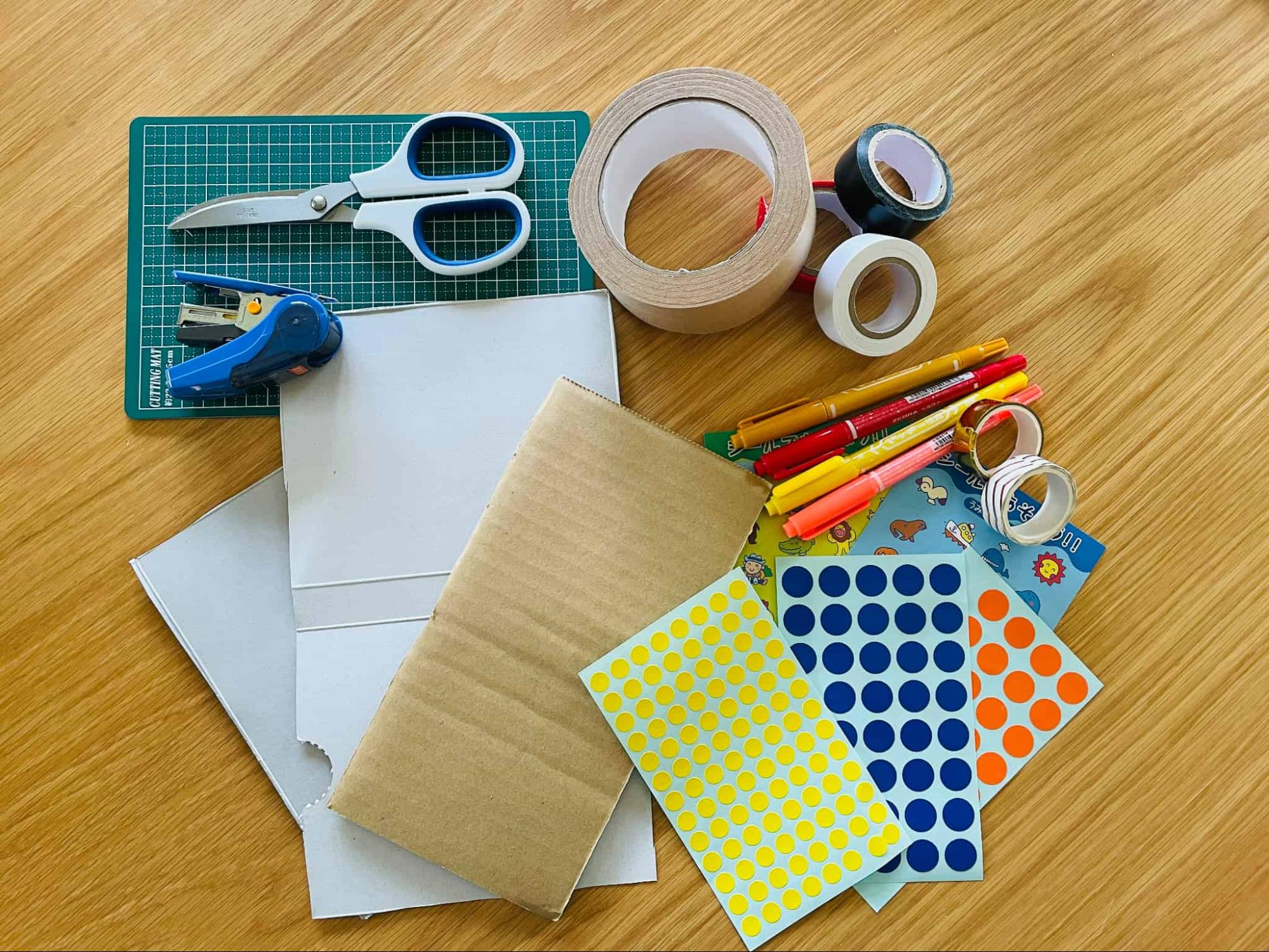 厚紙を重ねて留めるので、簡易的なものより大きめのホチキスのほうが◎