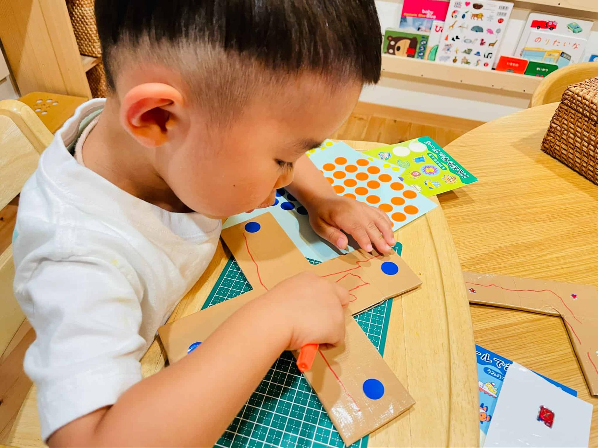 カッターのほうが測った長さどおりキレイに切ることができますが、お子さんが使用する場合はハサミのほうが安全です。