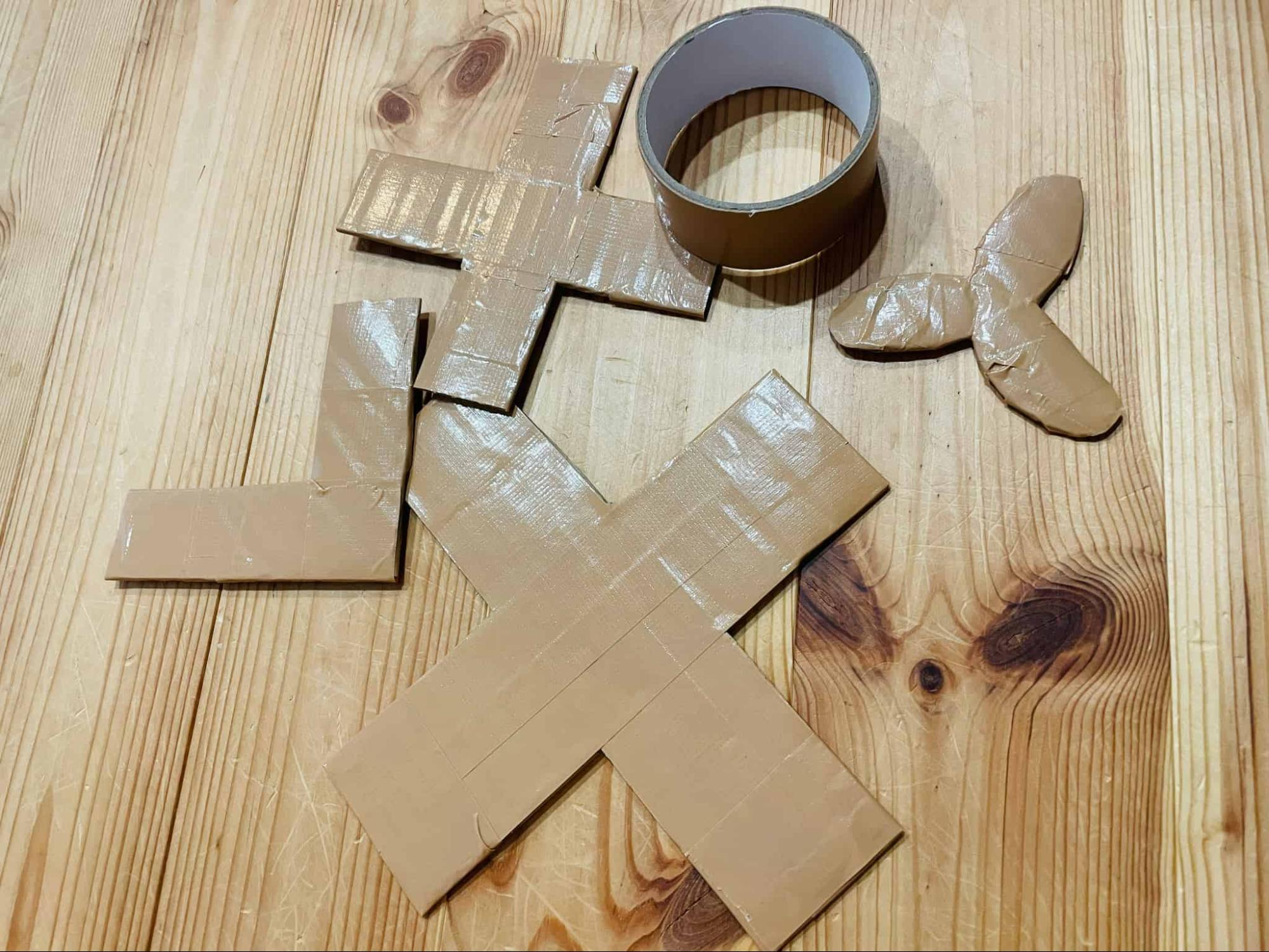ガムテープは布ガムテープがキレイに成形できるのでオススメ。