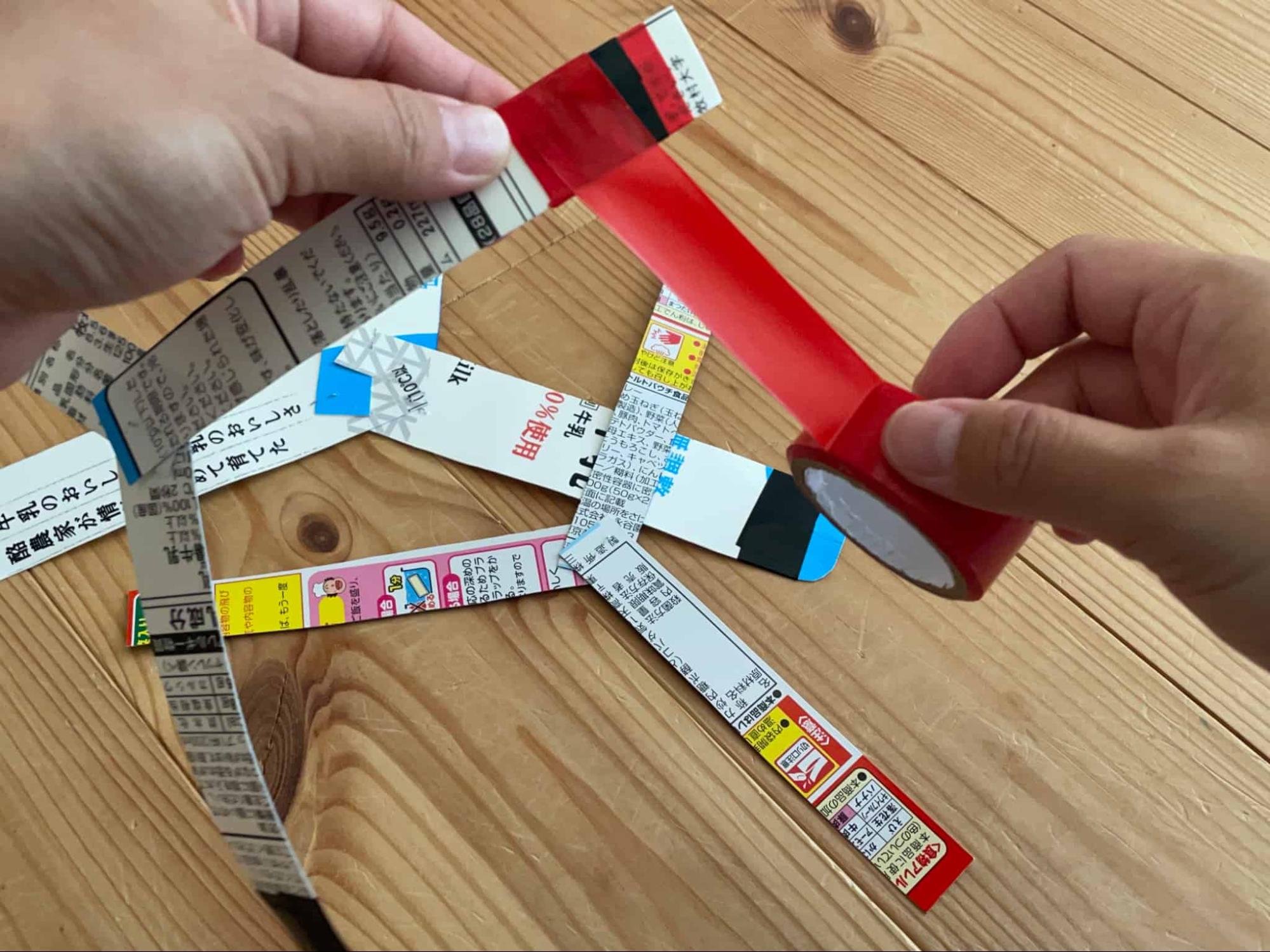 ■ステップ④:切り込みを合わせホッチキスで止めテープの重りをつけて完成!