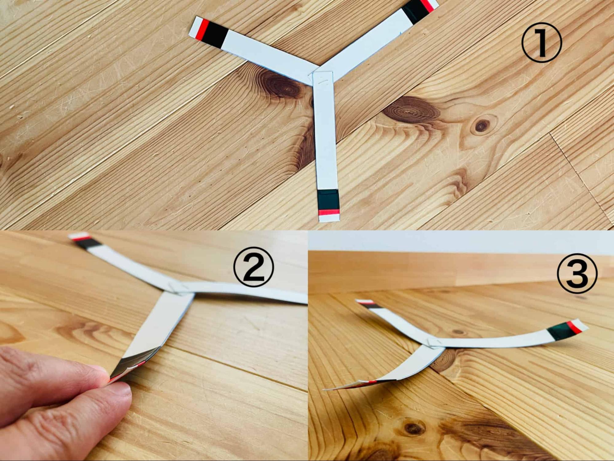 ②:3枚の羽の先端を画像のように「く」の字に曲げます。