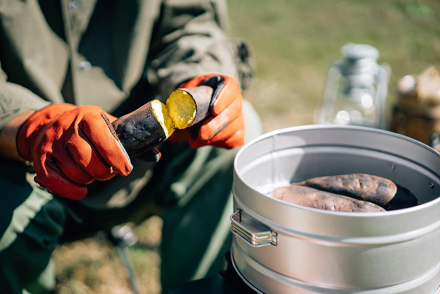 熾火で焼いても、ダッチオーブンで焼いても、本格的な石焼き芋にしても、アウトドアで食べる焼き芋は格別。