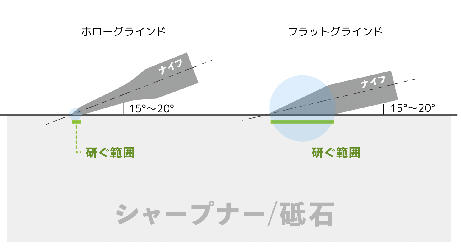 【①ナイフの種類によって砥石の硬さ・研ぎ方を変える】