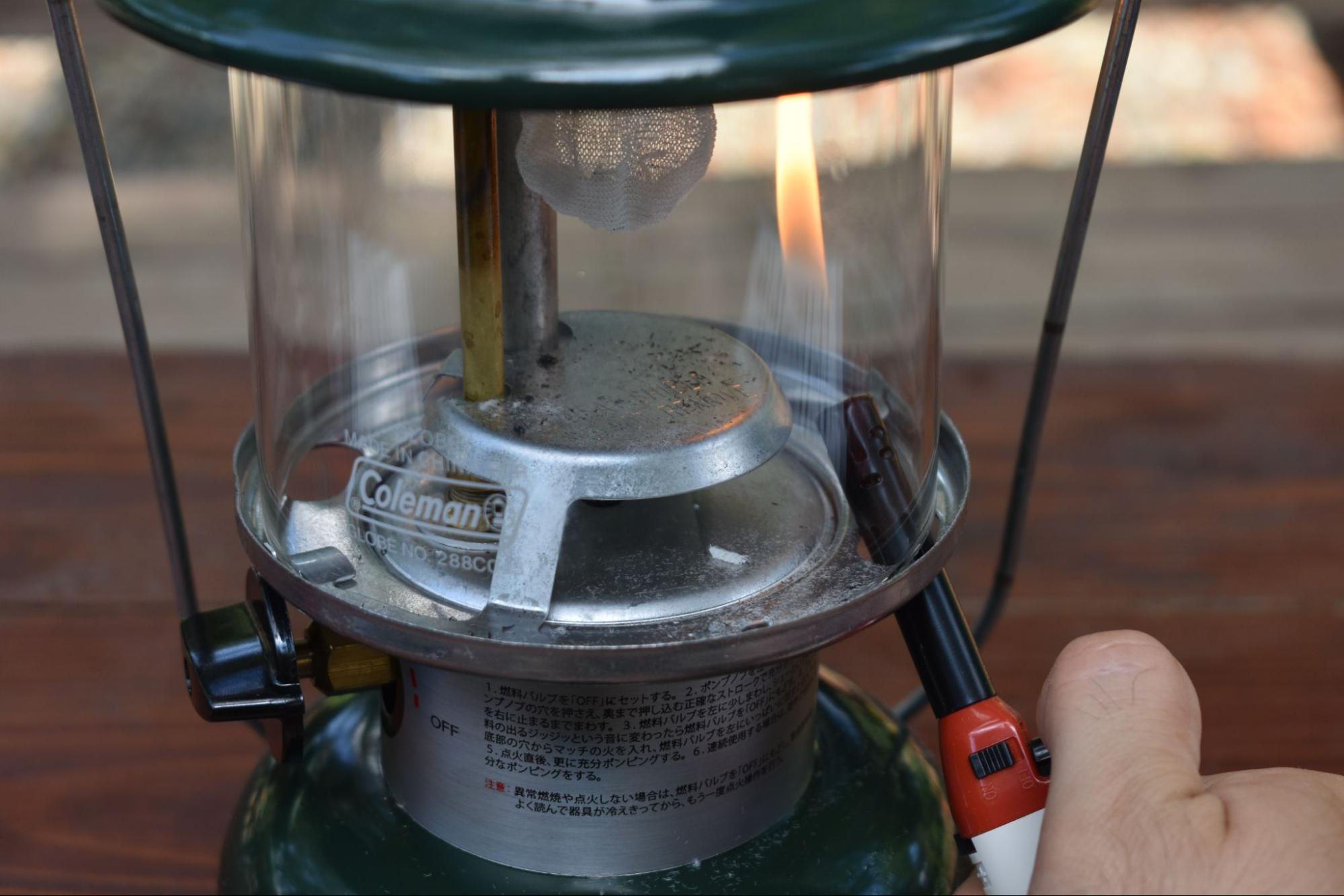 LEDランタンが出せる眩しいくらいの強い光はないものの、ガソリンランタンに火が灯った時のなんともいえない惹きつけるゆらめきも心を掴んで離しません。
