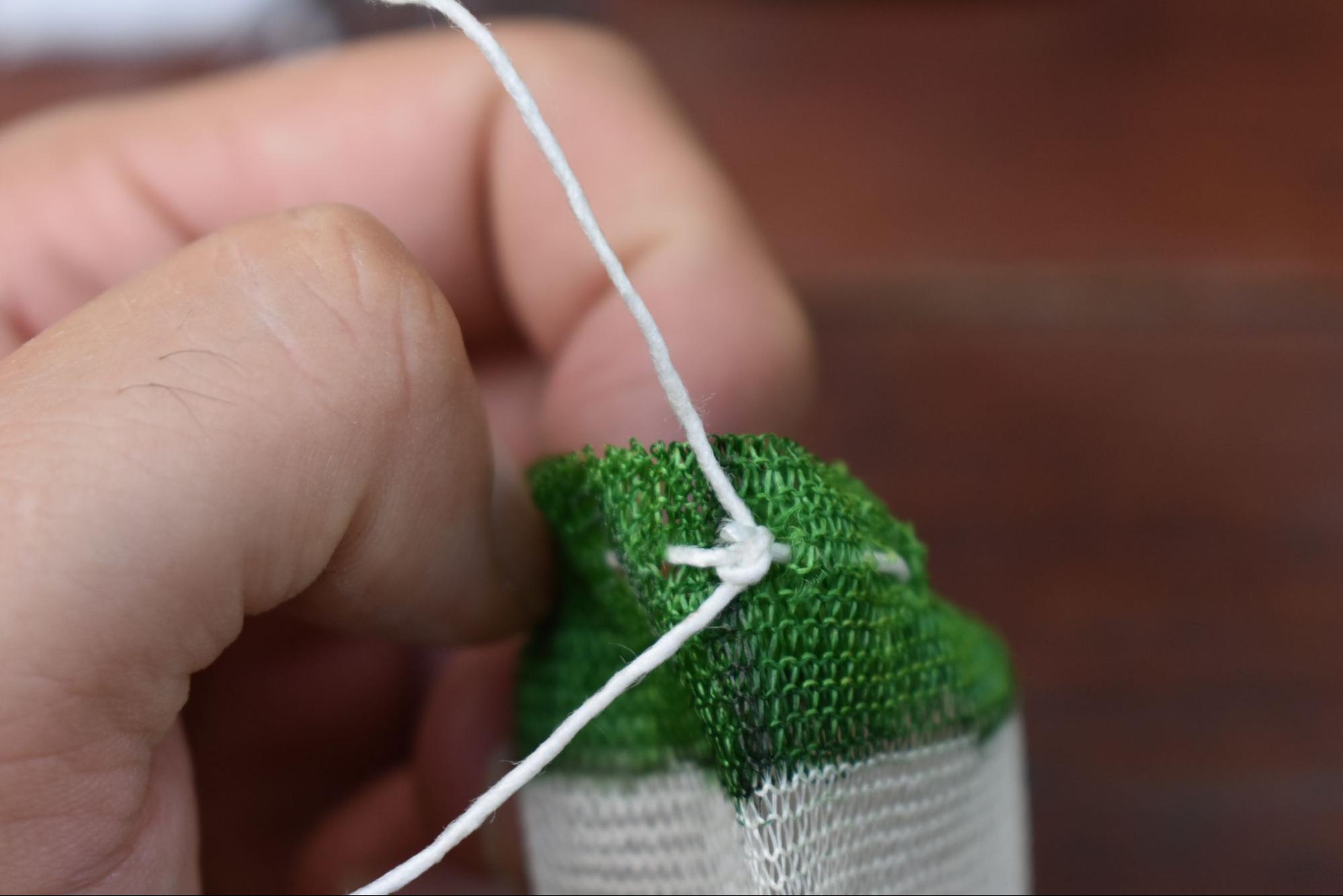 ②バーナーチューブ先端にある溝に引っ掛けるように取り付けて、ひもを引いてマントルを固定します。