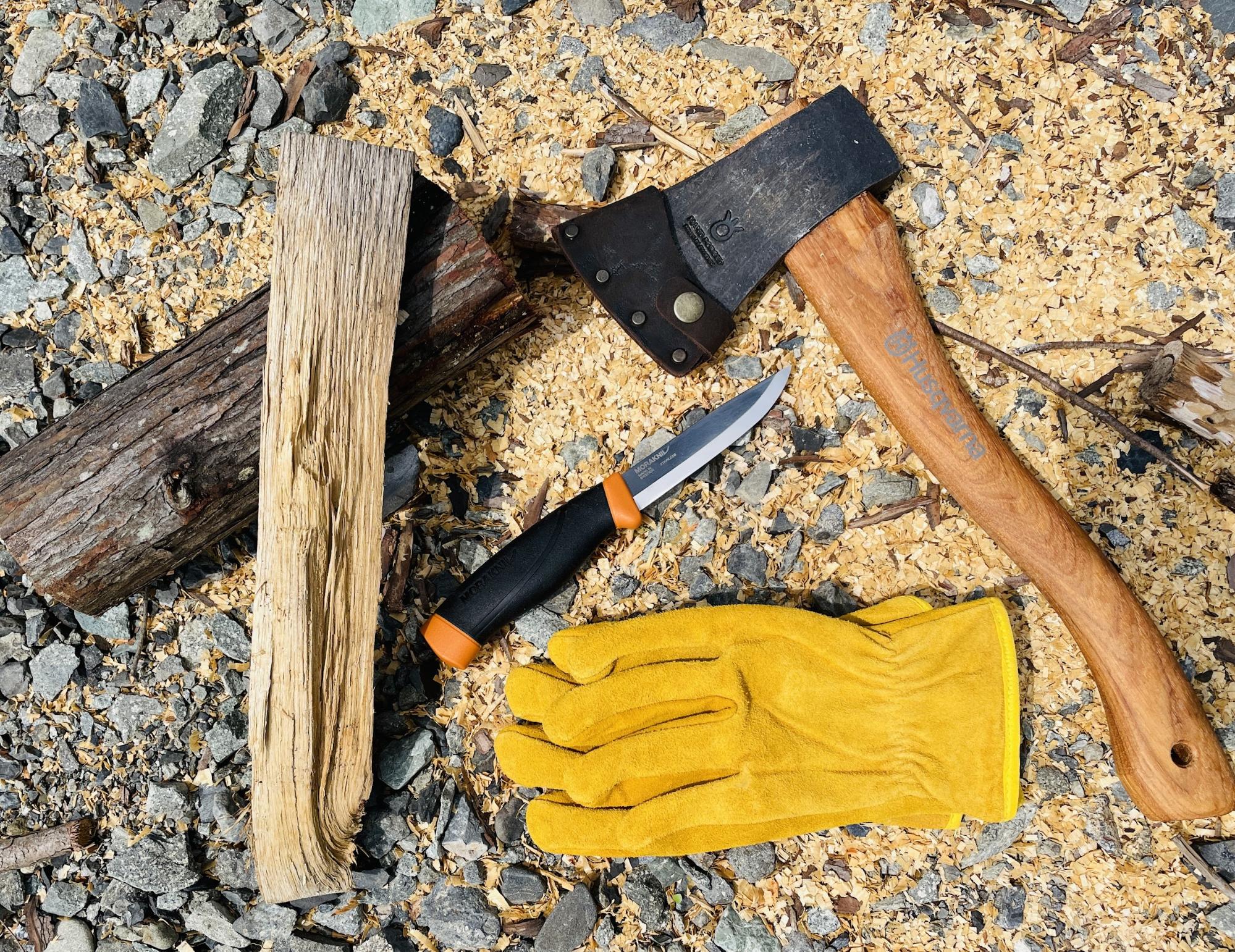 基本的にナイフ1本と薪があればすぐにできてしまうバトニングですが、より安全・快適に作業を進めるために、あると便利なアイテムを紹介します。