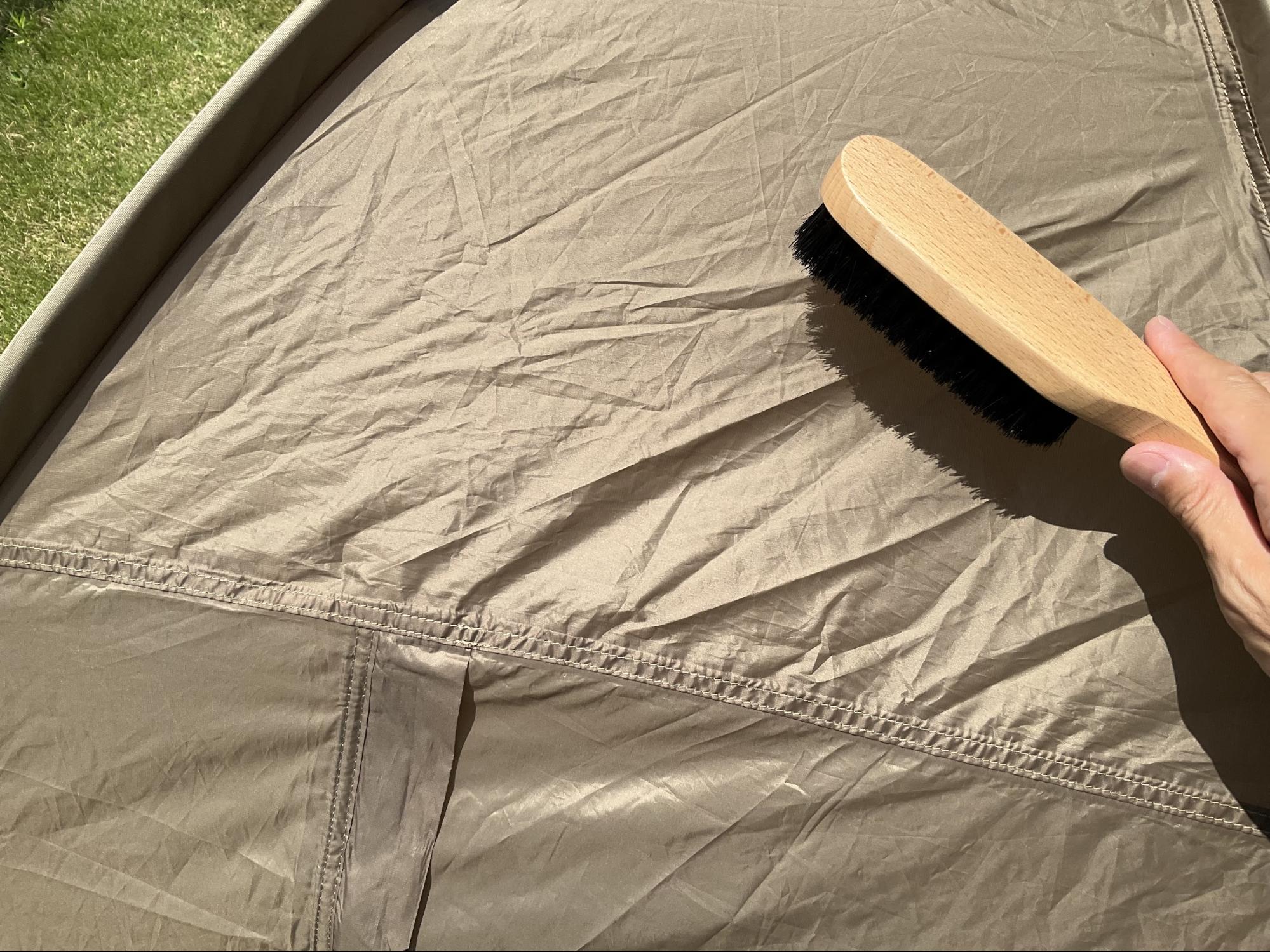 乾燥したらフライシートを毛先の柔らかいブラシでブラッシングしてあげましょう。