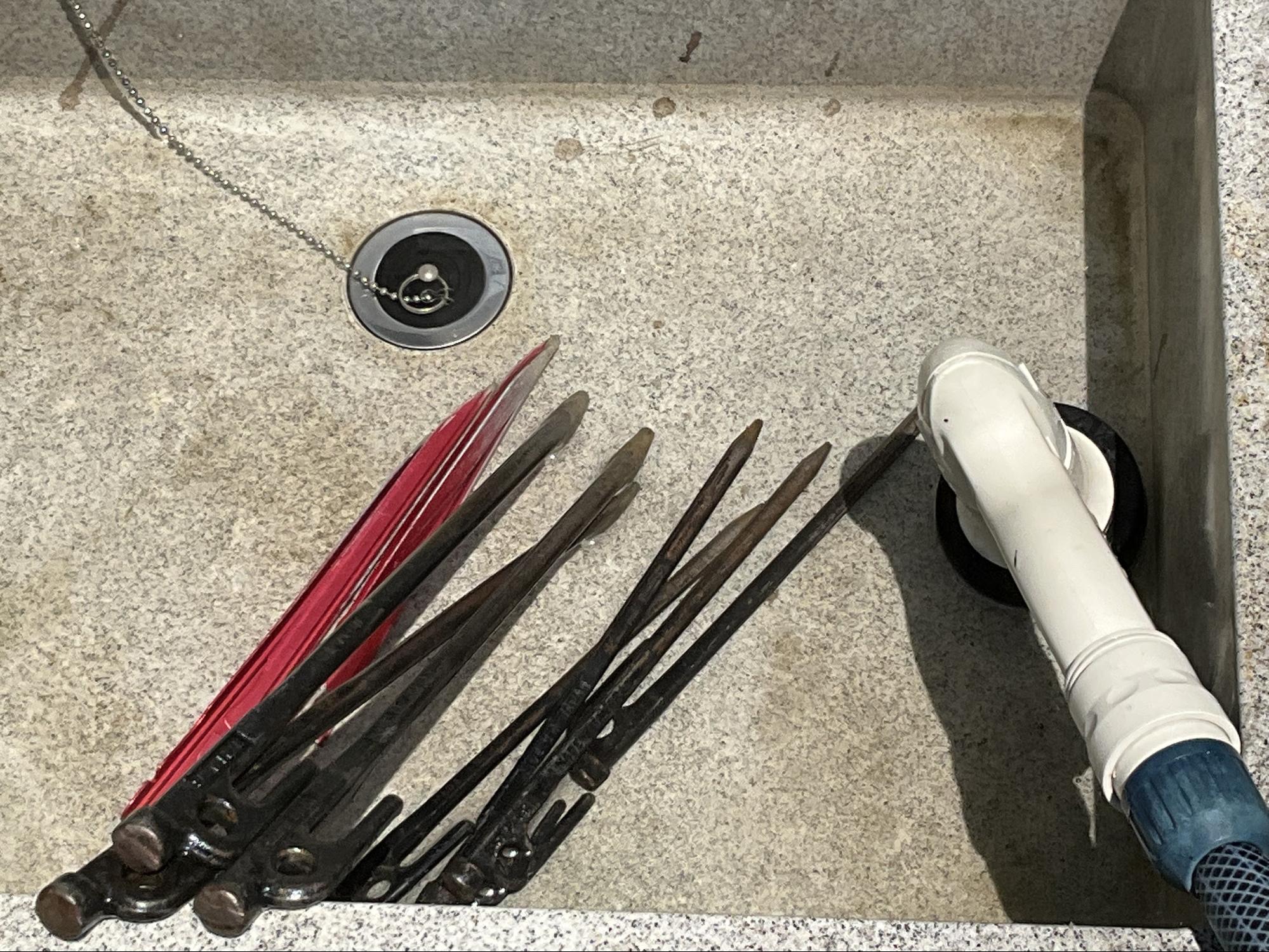 鍛造のペグは曲がってしまうこともありますので、もし曲がりを見つけたらハンマーで叩いてあげて真っ直ぐに直しましょう。