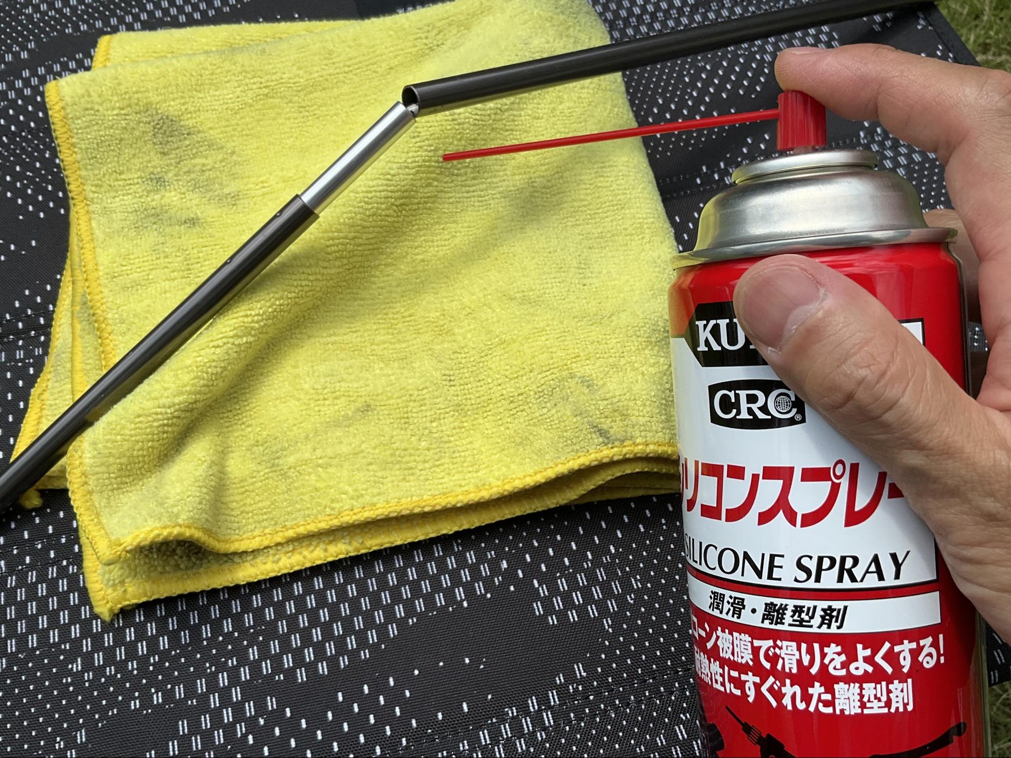 撤収時にフレームの継ぎ目を布で拭くようにしましょう。また、フレームにピンをさしてテントを設営するタイプの場合はフレーム内に砂利が入ってしまうので除去するようにしましょう。フレームは何度も使っていると繋ぎにくくなりますので、何か引っかかるなと感じたらシリコンスプレーを継ぎ目に拭いて滑らかにしてあげるといいですよ。