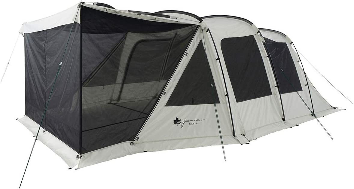 オーニング(日除け)が大きく張り出した「よしずスタイル」の前室が特徴的な2ルームテント。