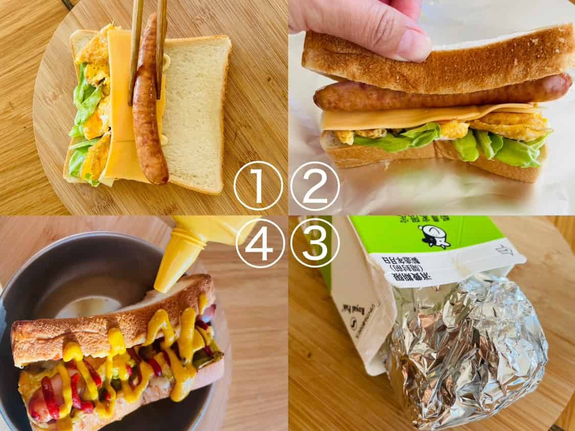 まず具材を挟んだパン自体をアルミホイルで包みます。