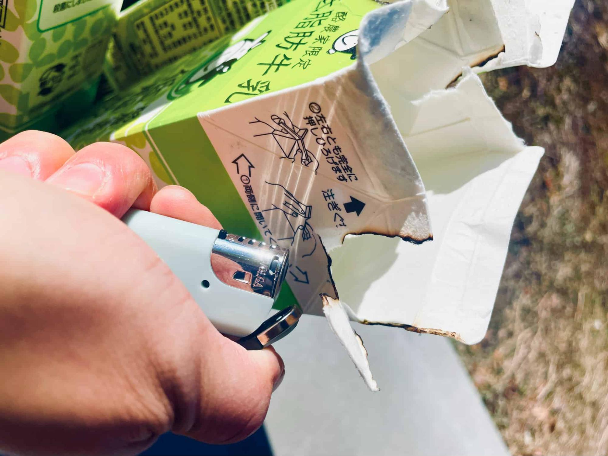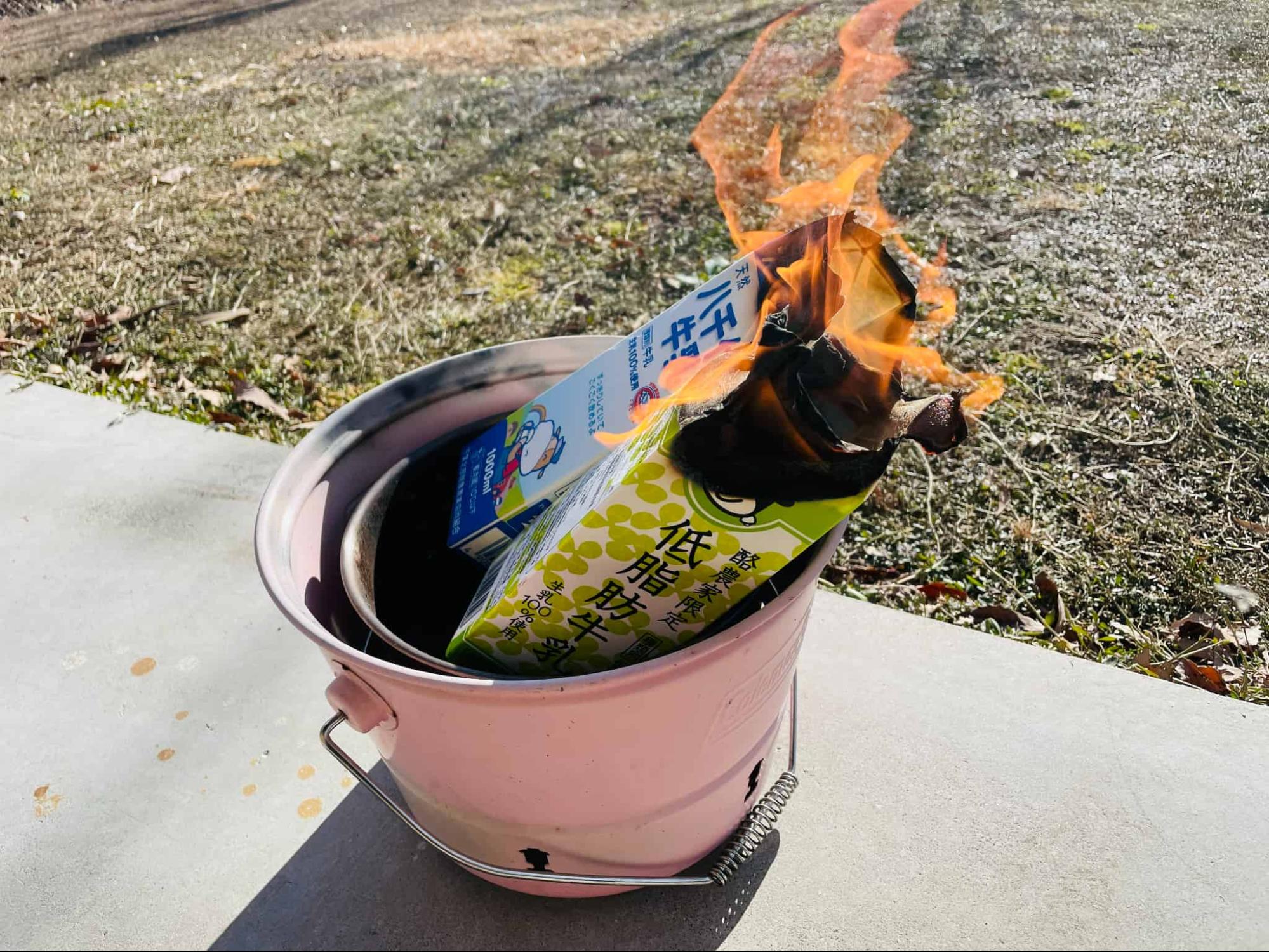 また、燃えていくうちに牛乳パックの燃えカスがひらひらと落ち、風で飛んでいくことがあります。
