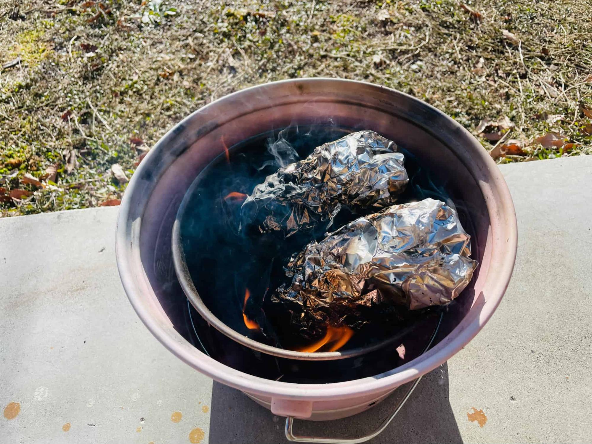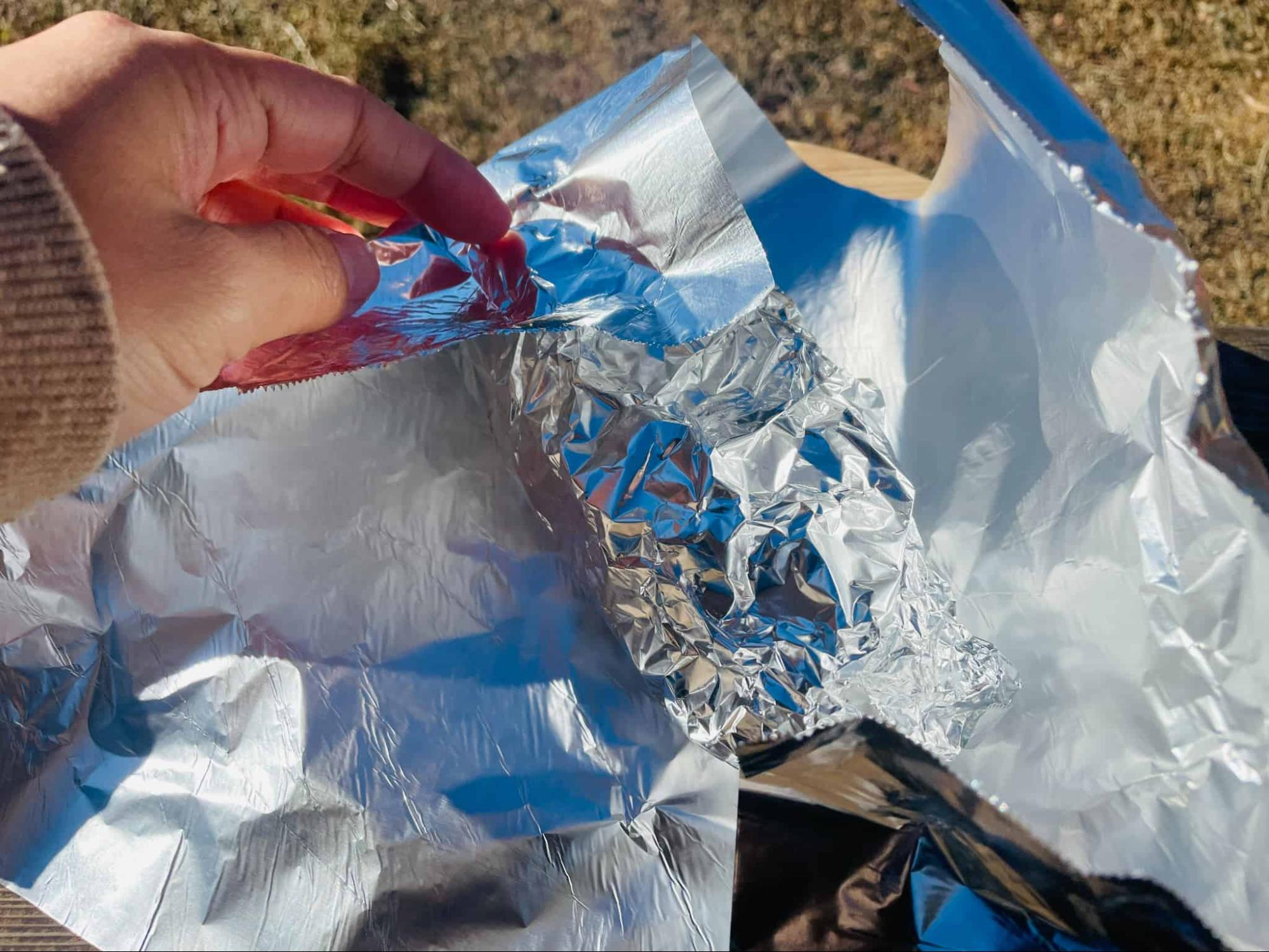 少し冷めてから、軍手などをして焚き火台から外し、周りのアルミホイルをそっと剥がします。