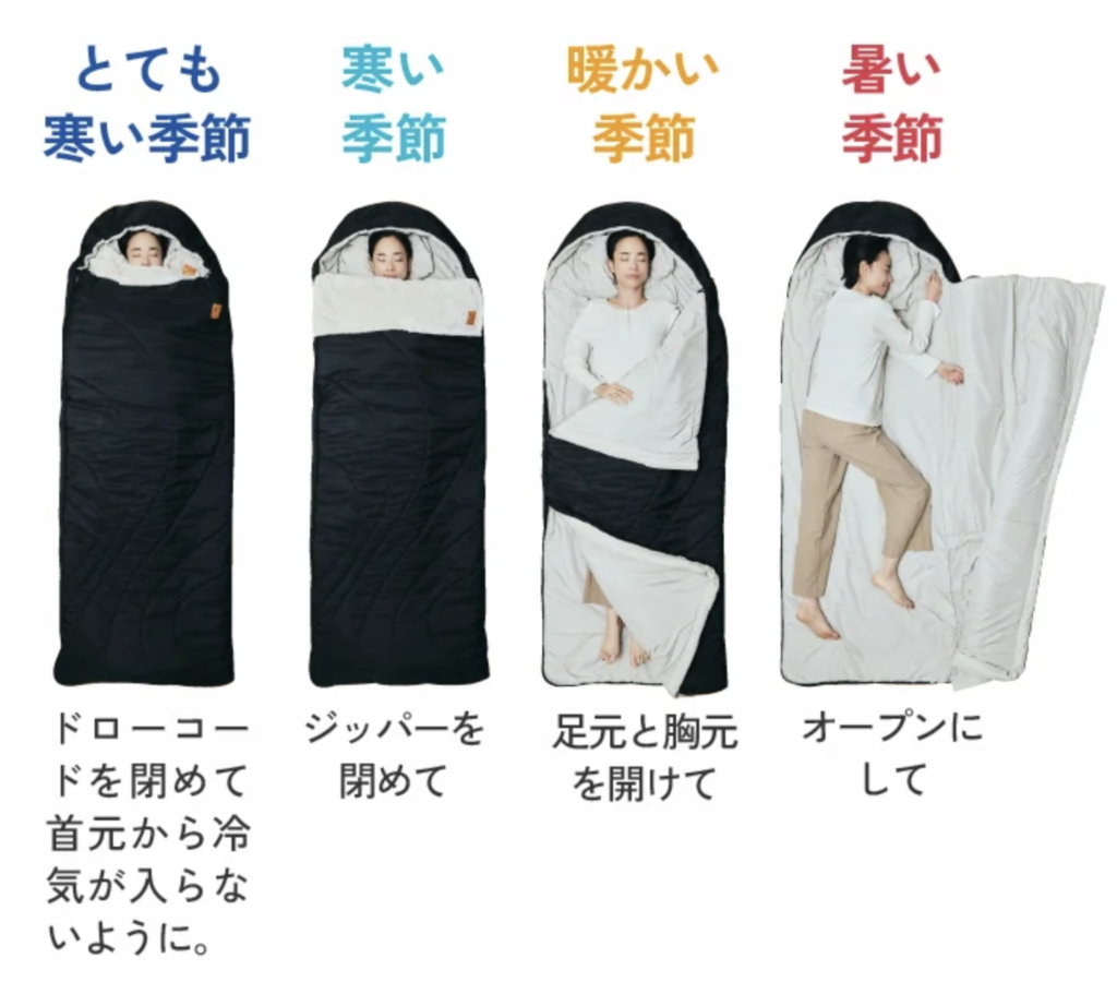 別の寝袋をすでに持っていても、シーンによって使い分けができるのでまずは自宅用としてゲットするのもアリですよ♪