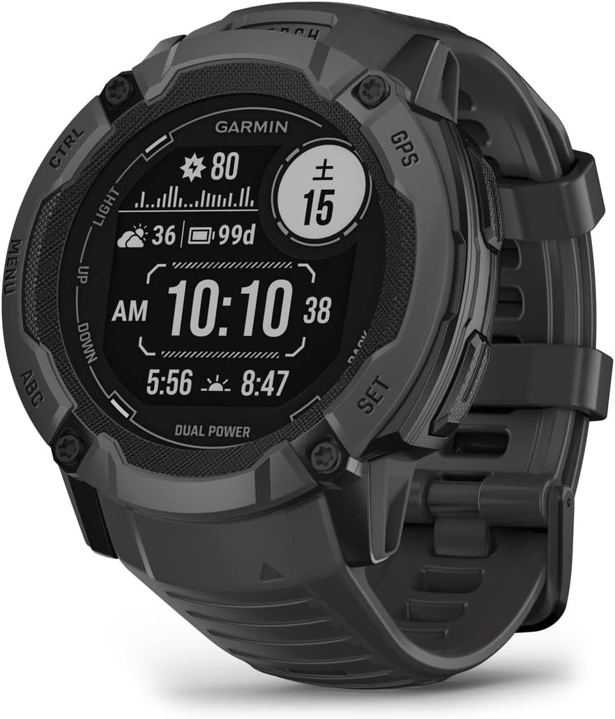 Instinct Crossover Dual Powerは、アナログ針と高精度GPS機能を融合したタフネススマートウォッチ。